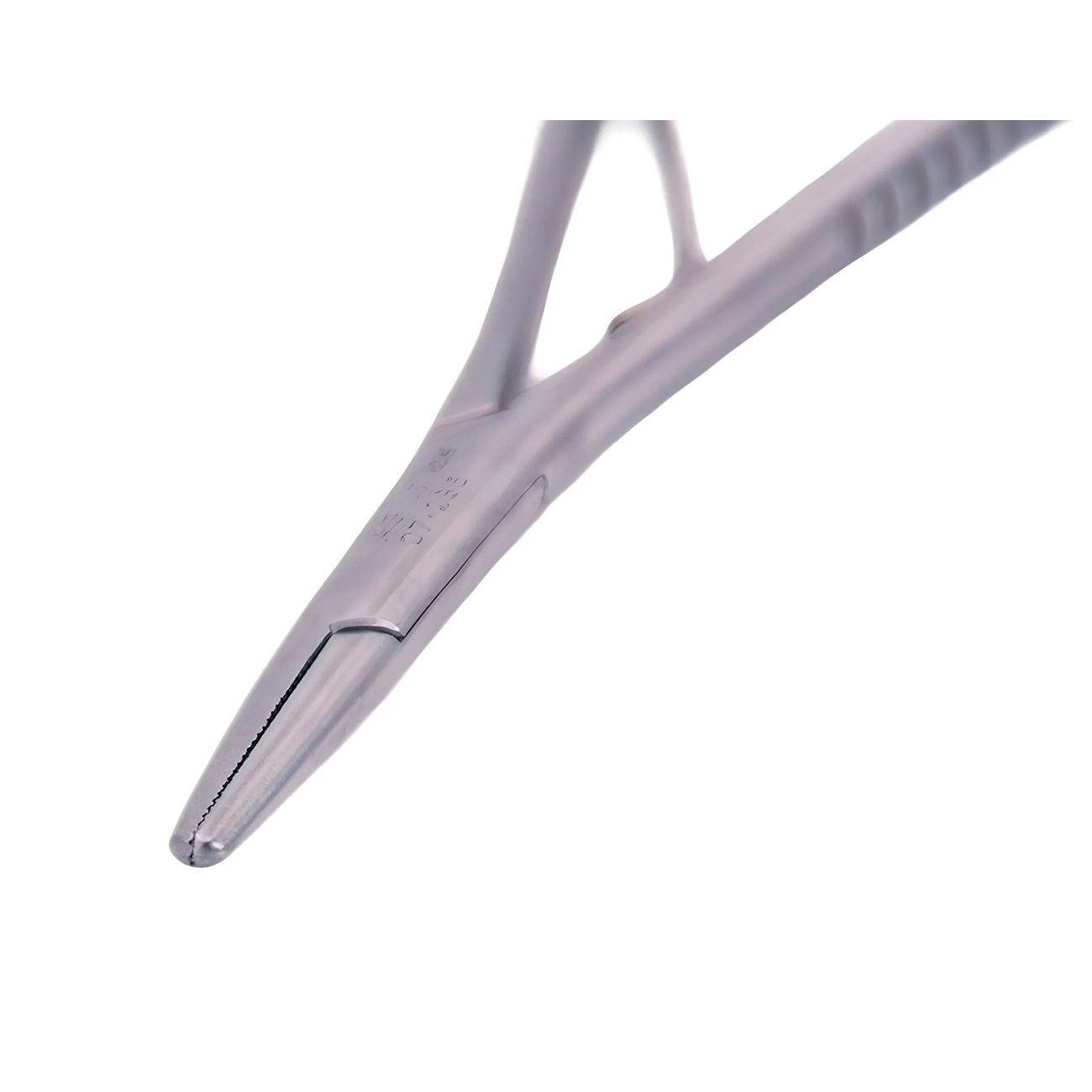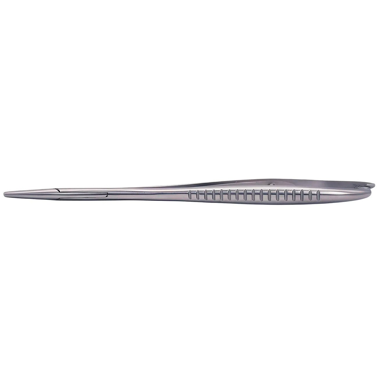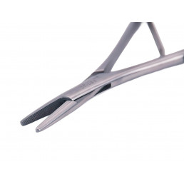 Благодаря подпружиненной рукояти с механизмом плавного разведения, силу сжатия инструмента можно регулировать одной рукой - без небходимости захватывать иглу пальцами. Узкий кончик иглодержателя 07-235 обеспечивает достаточную свободу движений при наложении длинной лигатуры непосредственно в полости рта.