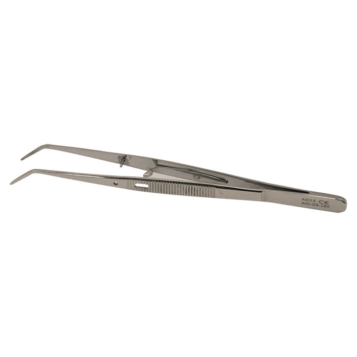 03-186 PRO Пинцет изогнутый с зажимом Con Blocaggio, 15,0см, AGILE