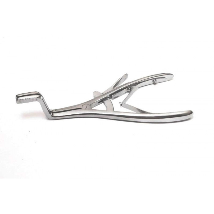 Роторасширитель с кремальерой 190 мм (аналог Р-18 и Р-15) — оттесняющий медицинский инструмент для разведения челюстей и удержания рта открытым при осмотре и лечебных манипуляциях. Фиксировать роторасширитель в нужном положении позволяет ступенчатая кремальера. Рабочие губки изогнутые.