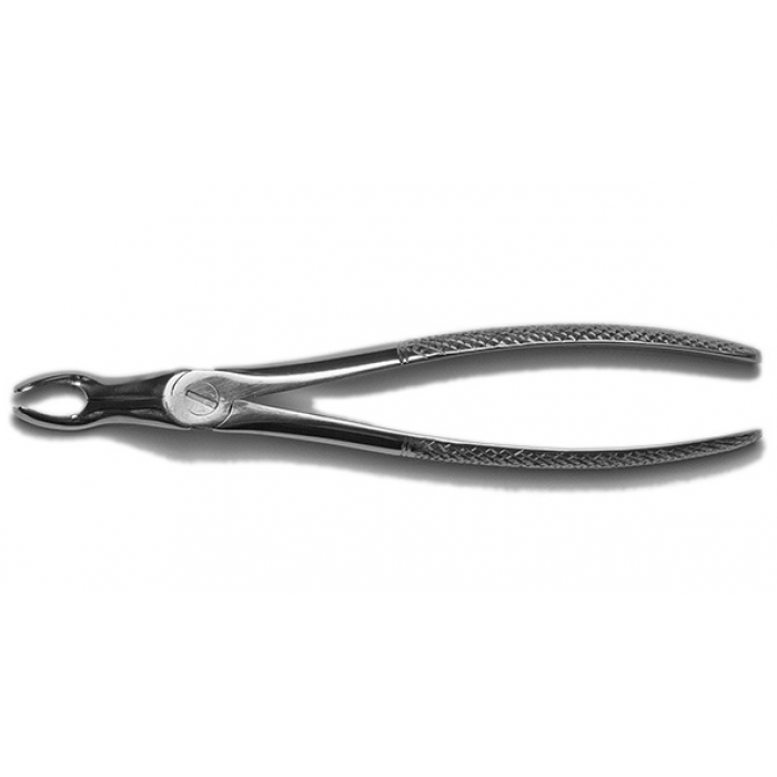 Изогнутая рабочая часть-байонет с несходящимися губками обеспечивает оптимальный доступ к молярам в глубине полости рта и надежный захват зуба. Для лучшего приложения силы щипцы оснащены длинными эргономичными рукоятками с перекрестной насечкой.