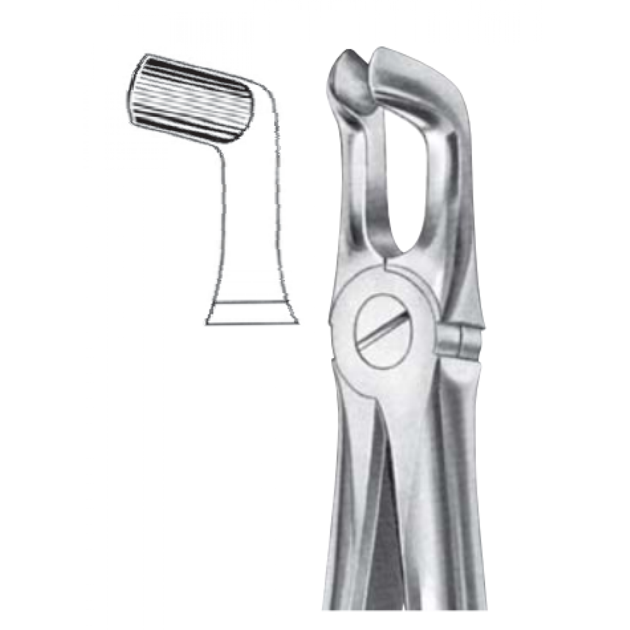 Изогнутая рабочая часть инструмента с несходящимися закругленными губками обеспечивает оптимальный доступ к молярам в глубине полости рта и надежный захват зуба. Для лучшего приложения силы щипцы оснащены длинными эргономичными рукоятками с перекрестной насечкой.