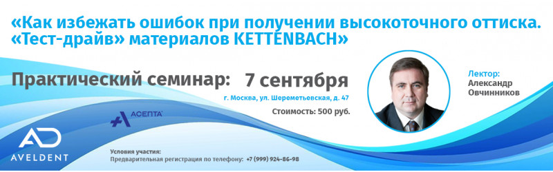 Семинар: Как избежать ошибок при получении высокоточного оттиска. «Тест-драйв» материалов KETTENBACH (7 сентября 2023)