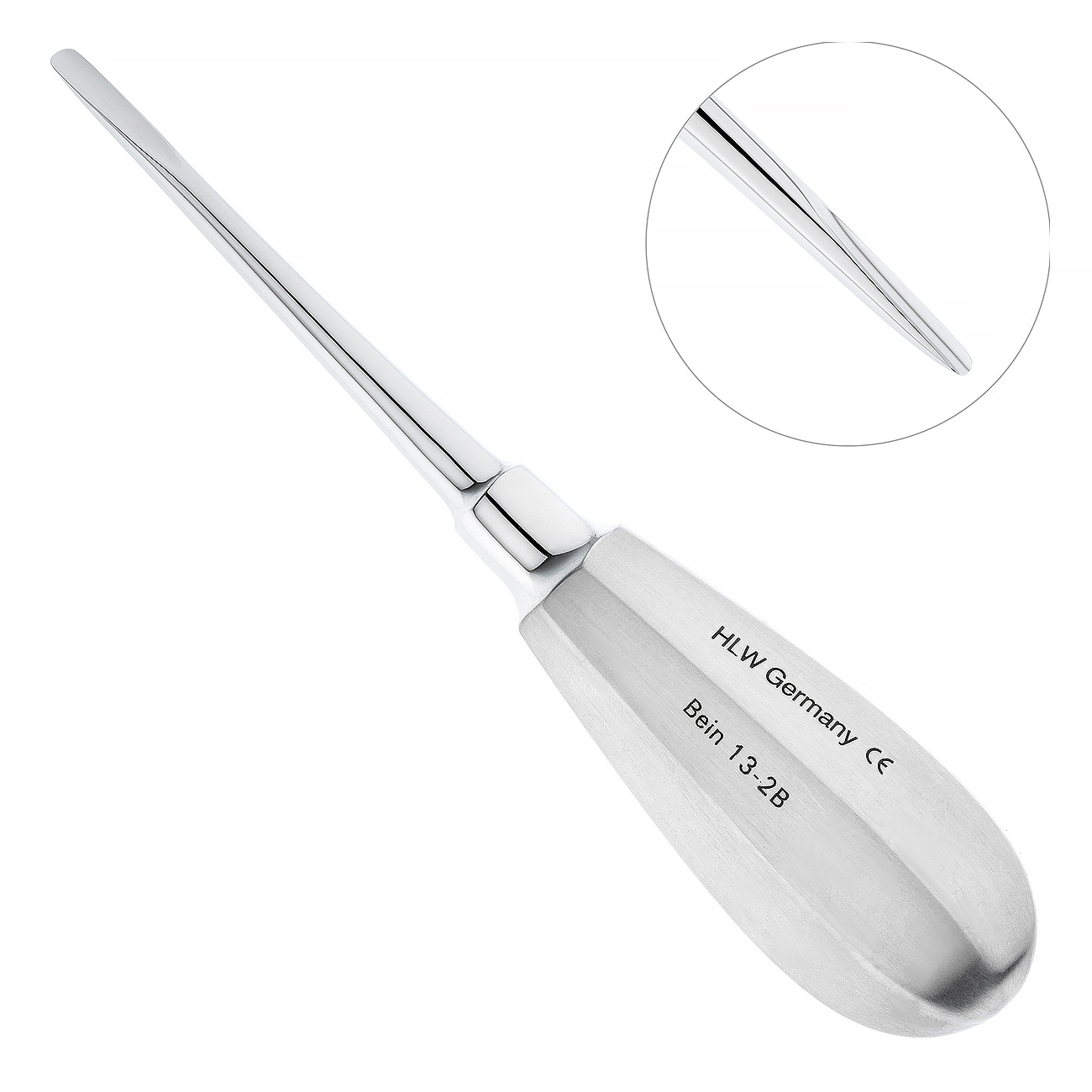 Все инструменты производства HLW Dental Instruments обрабатываются вручную и проходят тщательное техническое тестирование для исключения возможности брака. Для изготовления элеваторов HLW 13-2B используется устойчивая к автоклавированию и прочим методам стерилизации нержавеющая сталь. Поверхность элеватора отполирована до зеркального блеска, что придает ему эстетичный вид.