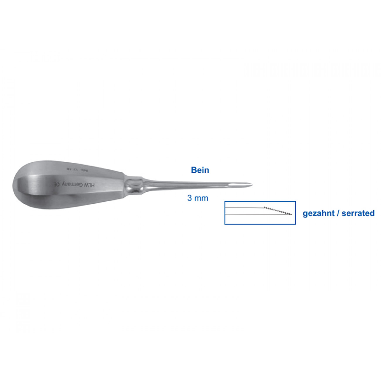 Если вам требуется приобрести элеватор Bein 13-4BZ, вы можете воспользоваться следующими словами для поиска: элеватор bein, элеватор зубчатый, элеватор 3 мм, купить элеватор, стоматология, удаление зубов, люксатор, удаление корней, стоматологический инструмент.