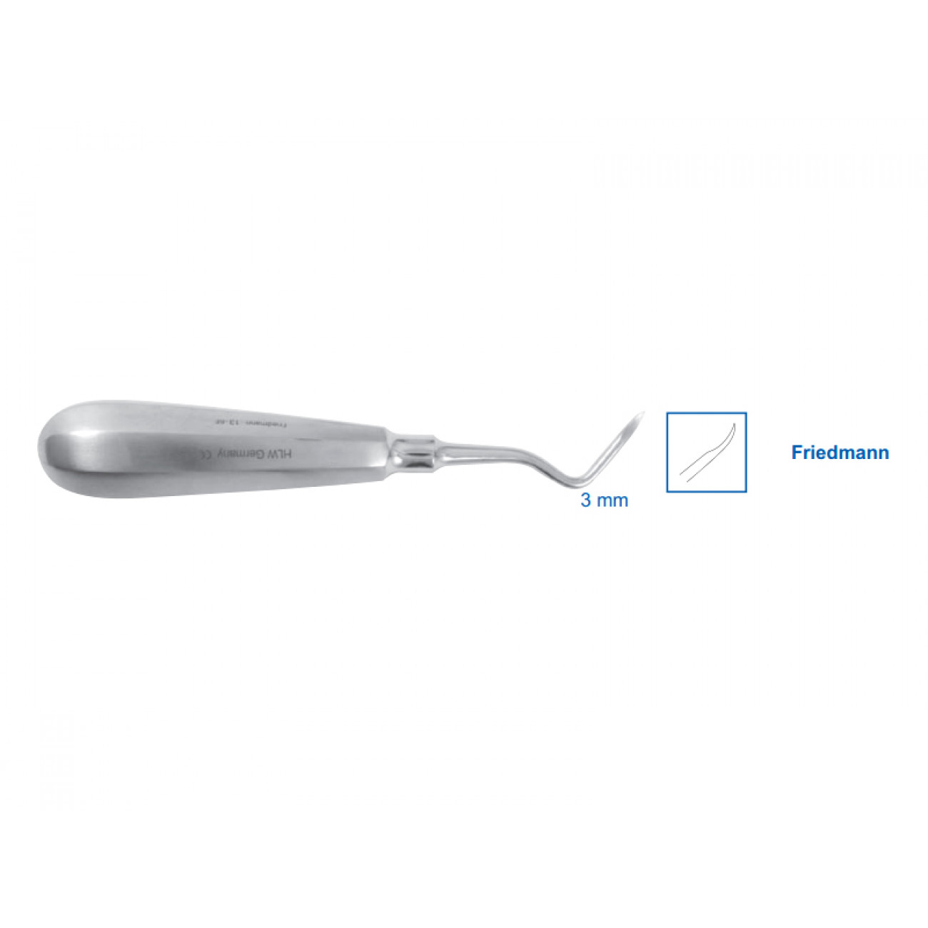 Ключевые слова для поиска товара: элеватор friedmann, элеватор 13-6f, изогнутый элеватор, удаление корней зубов, стоматологический инструмент.