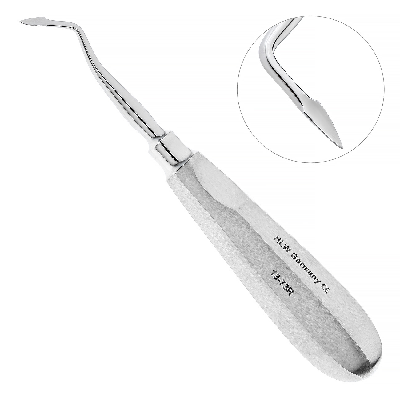 Элеватор правый, штыковидный 13-73R — это стоматологический инструмент, предназначенный для использования в эндодонтии. Он относится к категории элеваторов и люксаторов.