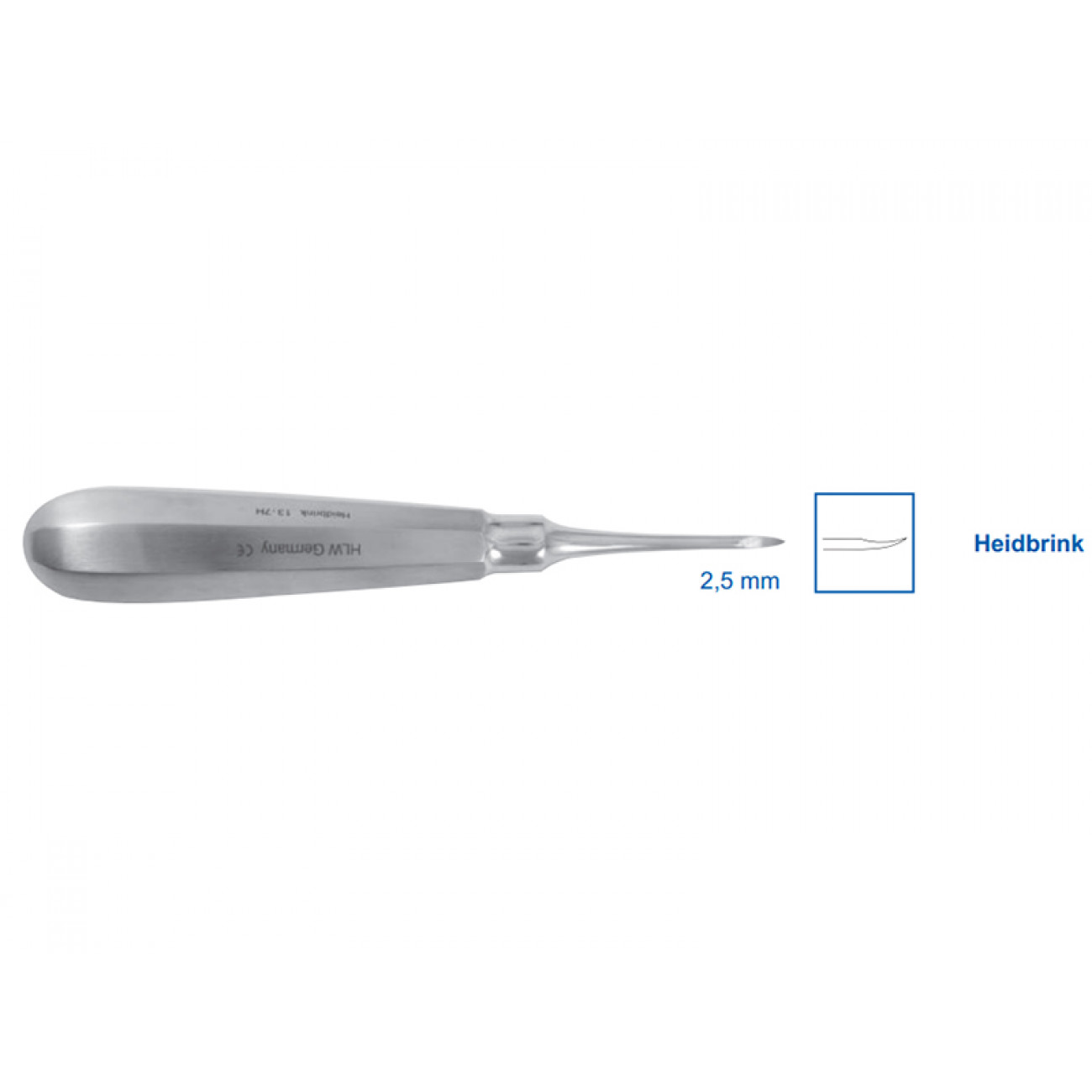 Элеватор Heidbrink 13-7H, 2.5 мм — это эффективный инструмент для удаления зубов и корней, который применяется в стоматологической практике.