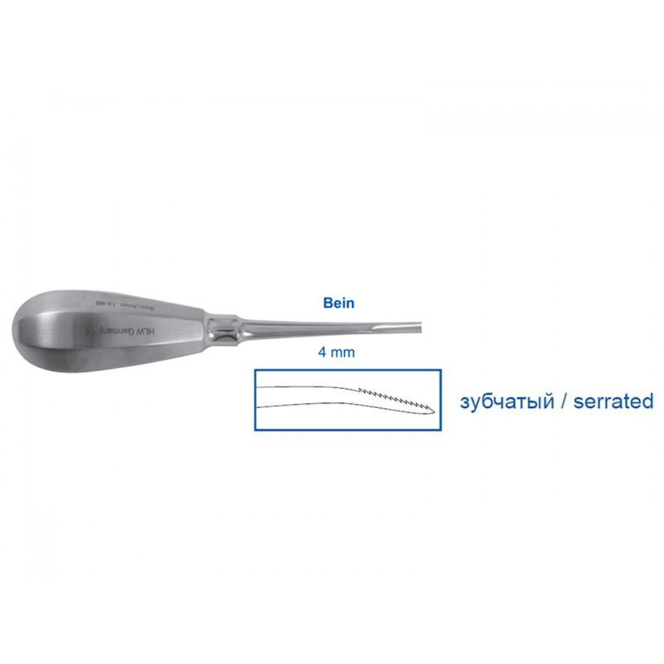"Элеватор Bein 13-8BZ, зубчатый, 4,0 мм" — это высококачественный инструмент, предназначенный для использования в стоматологии. Он относится к категории элеваторов и люксаторов, которые применяются для удаления зубов или их корней.