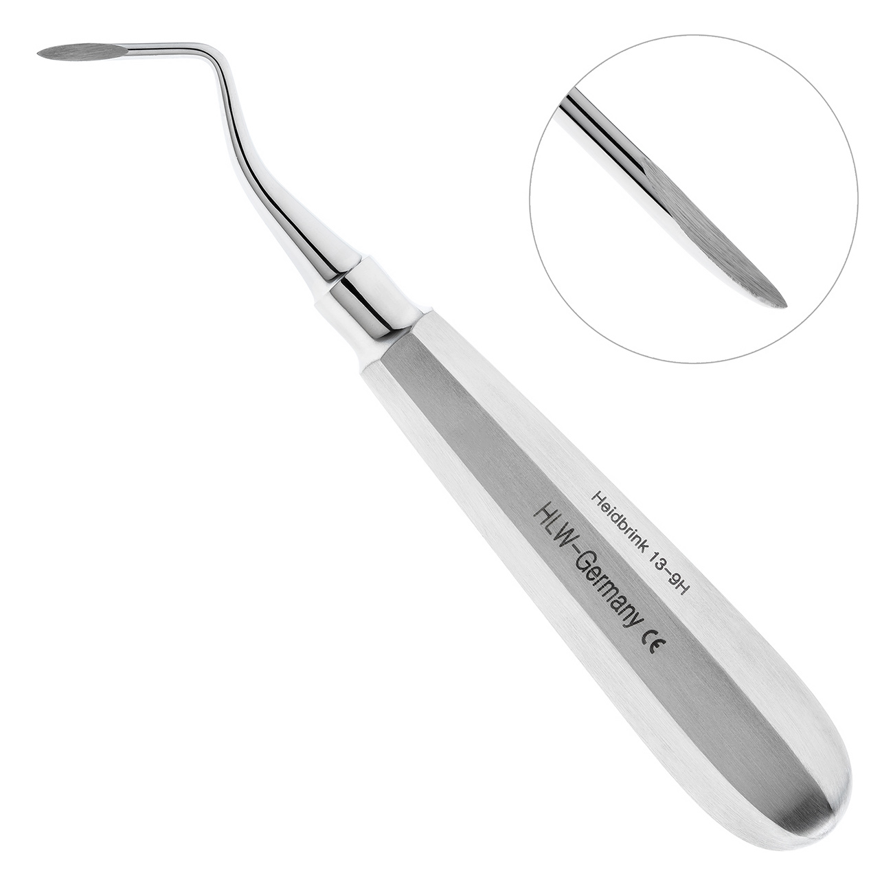 "Элеватор HeidBrink 13-9H, правый, 2,5 мм" — это высококачественный инструмент, предназначенный для использования в стоматологии. Он относится к категории элеваторов и люксаторов, которые широко применяются в эндодонтии и пародонтологии.