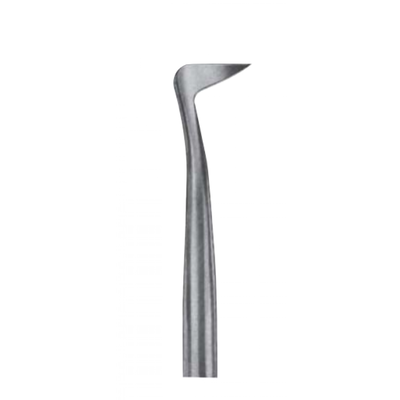 Угловой элеватор оснащен треугольной рабочей частью с заостренным кончиком, форма которой способствует легкому введению элеватора в альвеолярное гнездо и быстрому нахождению опорной точки. Изогнутый инструмент придает зубам сильное вращательное движение, достаточное для неосложненного удаления большинства корней.