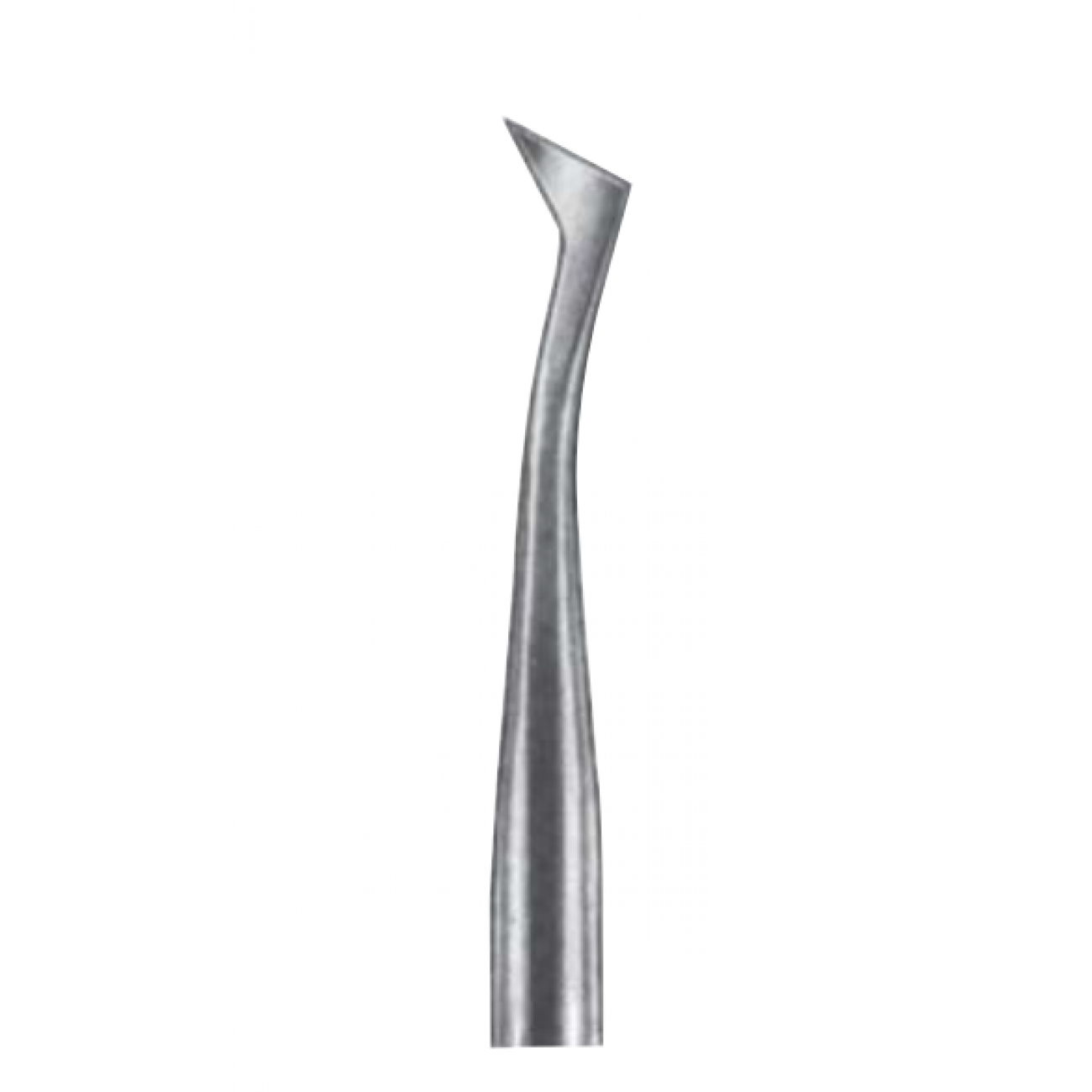 Средний угловой элеватор Cryer 28 S оснащен треугольной рабочей частью с заостренным кончиком, форма которой способствует легкому введению элеватора в альвеолярное гнездо и быстрому нахождению опорной точки. Изогнутый инструмент придает зубам сильное вращательное движение, достаточное для удаления моляров и дистальных корней моляров по дистально-радиальному пути.
