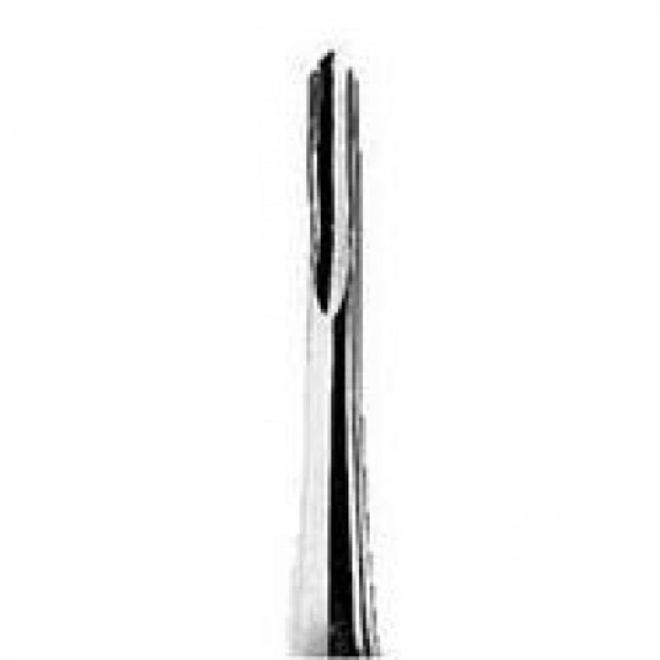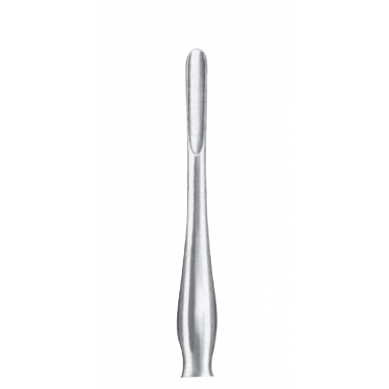 Острый кончик шириной 4 мм вводится между десной и внешней поверхностью зуба с целью рассечения тканей периодонта и расшатывания зуба, что позволяет проводить экстракцию с меньшим усилием, используя прямую рабочую часть инструмента как рычаг. Полая грушевидная граненая рукоять большого диаметра обеспечивает удобный нескользящий захват инструмента и оптимальное приложение силы при работе под любым углом.
