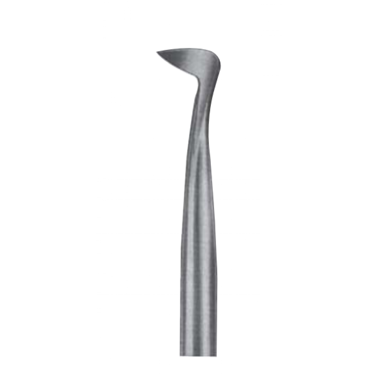 Угловой элеватор оснащен треугольной рабочей частью с заостренным кончиком, форма которой способствует легкому введению элеватора в альвеолярное гнездо и быстрому нахождению опорной точки. Изогнутый инструмент придает зубам сильное вращательное движение, достаточное для неосложненного удаления большинства корней.