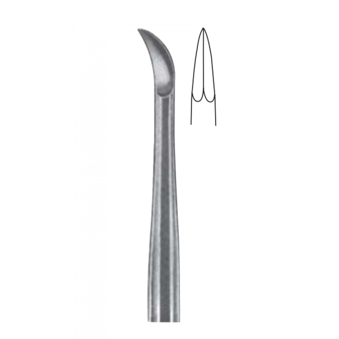 Когтеобразный элеватор оснащен треугольной рабочей частью с заостренным кончиком, форма которой способствует легкому введению элеватора в альвеолярное гнездо и быстрому нахождению опорной точки. Изогнутый инструмент придает зубам сильное вращательное движение, достаточное для неосложненного удаления большинства корней.