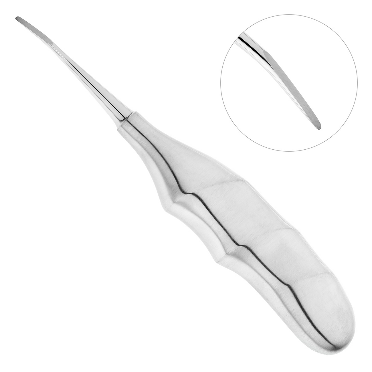 Люксатор используется для удаления зубов, особенно в случаях, когда зуб имеет сложную анатомическую структуру или расположен в труднодоступном месте. Изогнутая форма рабочей части позволяет более точно и безопасно проводить процедуру удаления.