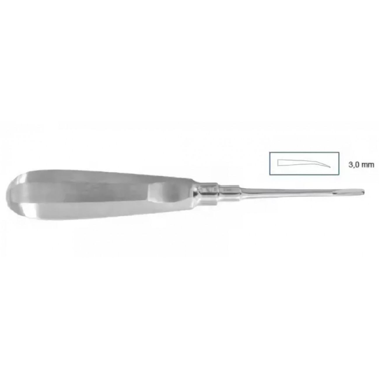 Основное назначение люксатора 13-25LX — удаление зубов или их фрагментов. Благодаря изогнутой форме и размеру 3.0 мм, инструмент обеспечивает точное и аккуратное удаление, минимизируя риск повреждения окружающих тканей.