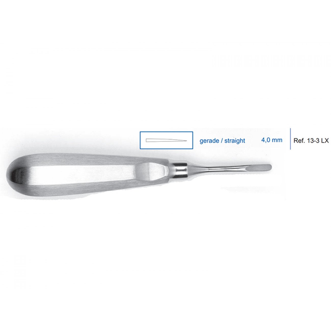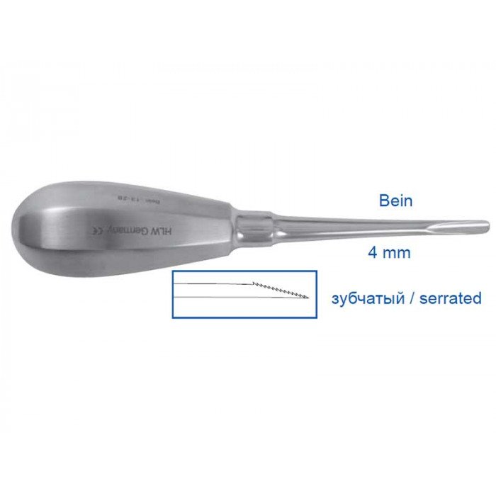 Люксатор прямой, 4.0 мм (13-3LX) — это инструмент, предназначенный для удаления корней зубов, который позволяет максимально сохранить костную ткань и минимизировать повреждение окружающих тканей.