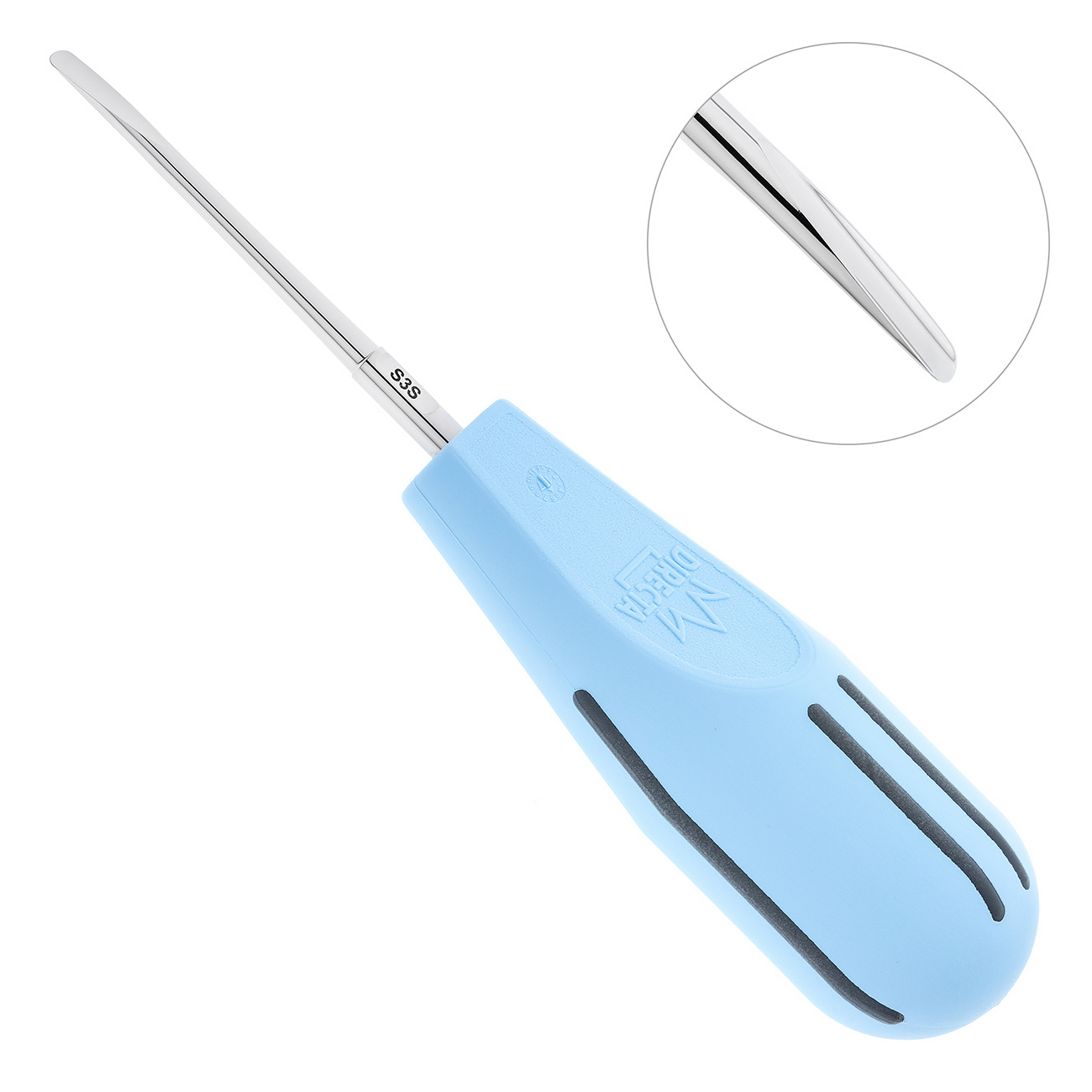 Люксатор периотом с укороченной прямой и острой закругленной рабочей частью шириной 3мм. Поставляется в контейнере Fixus1. Цветовая индикация: серый