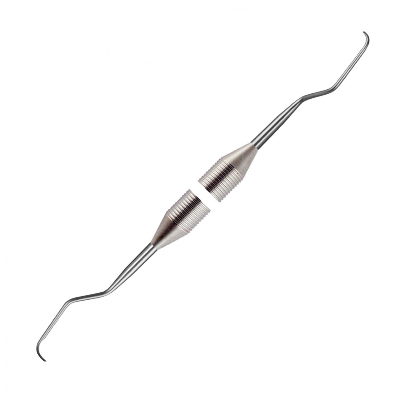Кюрета Грейси №3/4 представляет собой двусторонний пародонтологический инструмент, предназначенный для эффективного удаления зубного камня, налёта и других минерализованных отложений как наддесневой, так и поддесневой областей вестибулярных и оральных поверхностей фронтальных зубов нижней челюсти.