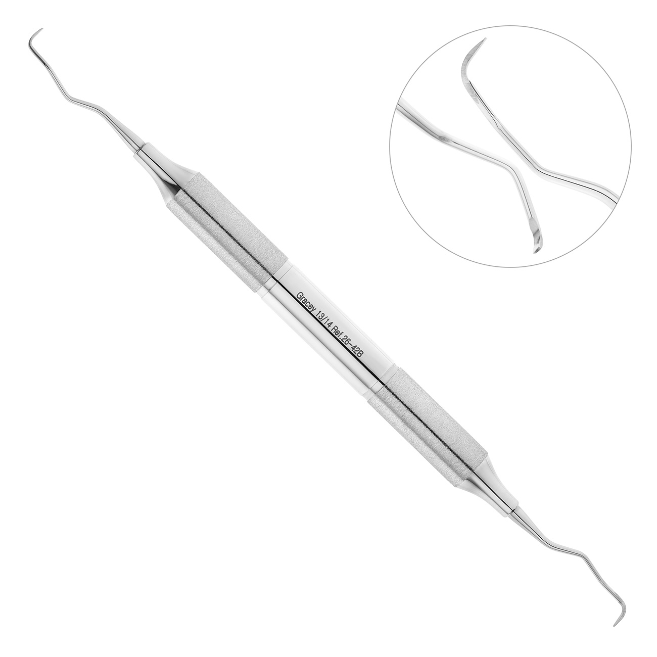 "Кюрета Gracey форма 13/14, ручка DELUXE, ? 10 мм" — это высококачественный пародонтологический инструмент, предназначенный для проведения профессиональной гигиены полости рта и лечения заболеваний пародонта.