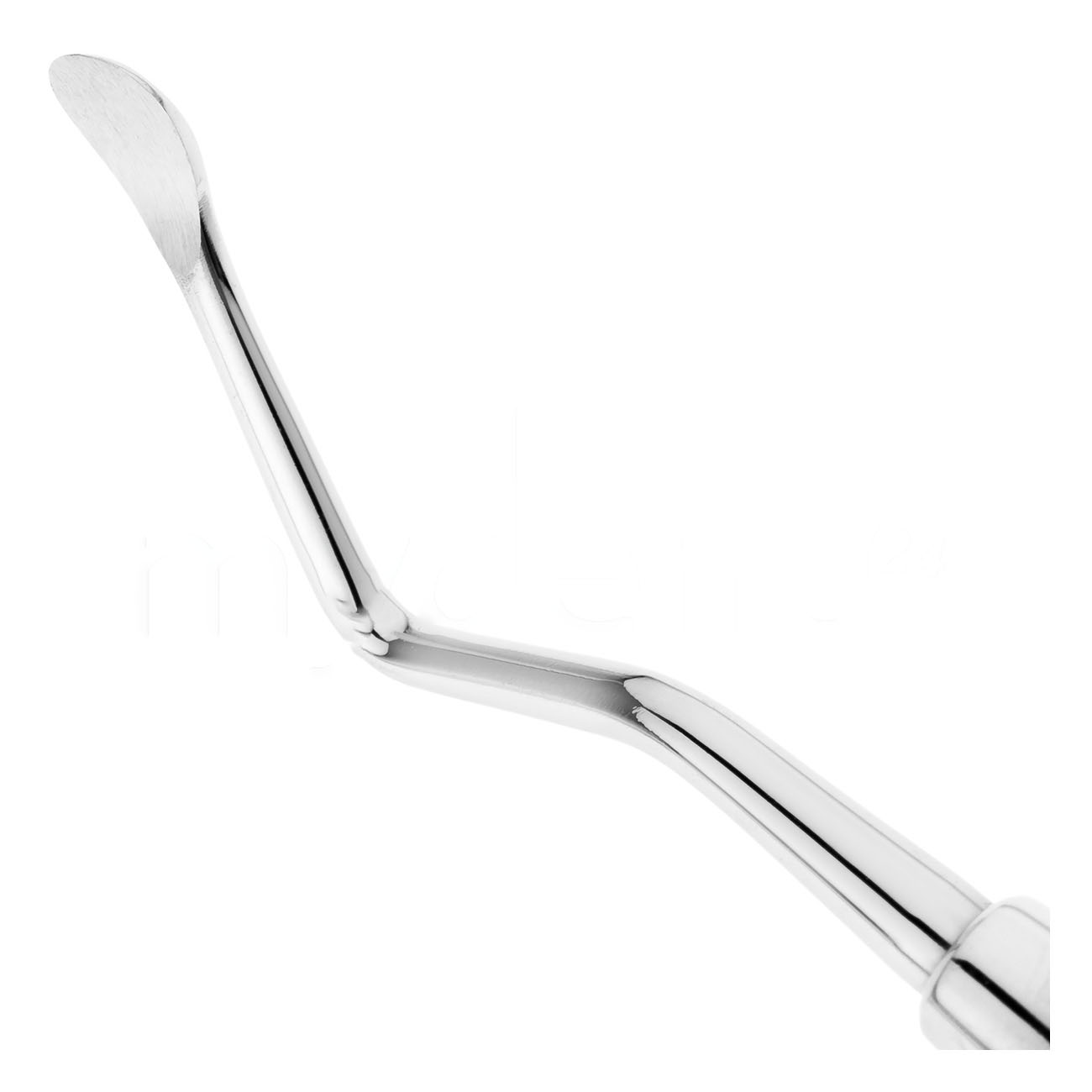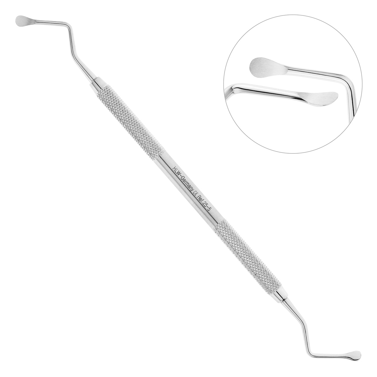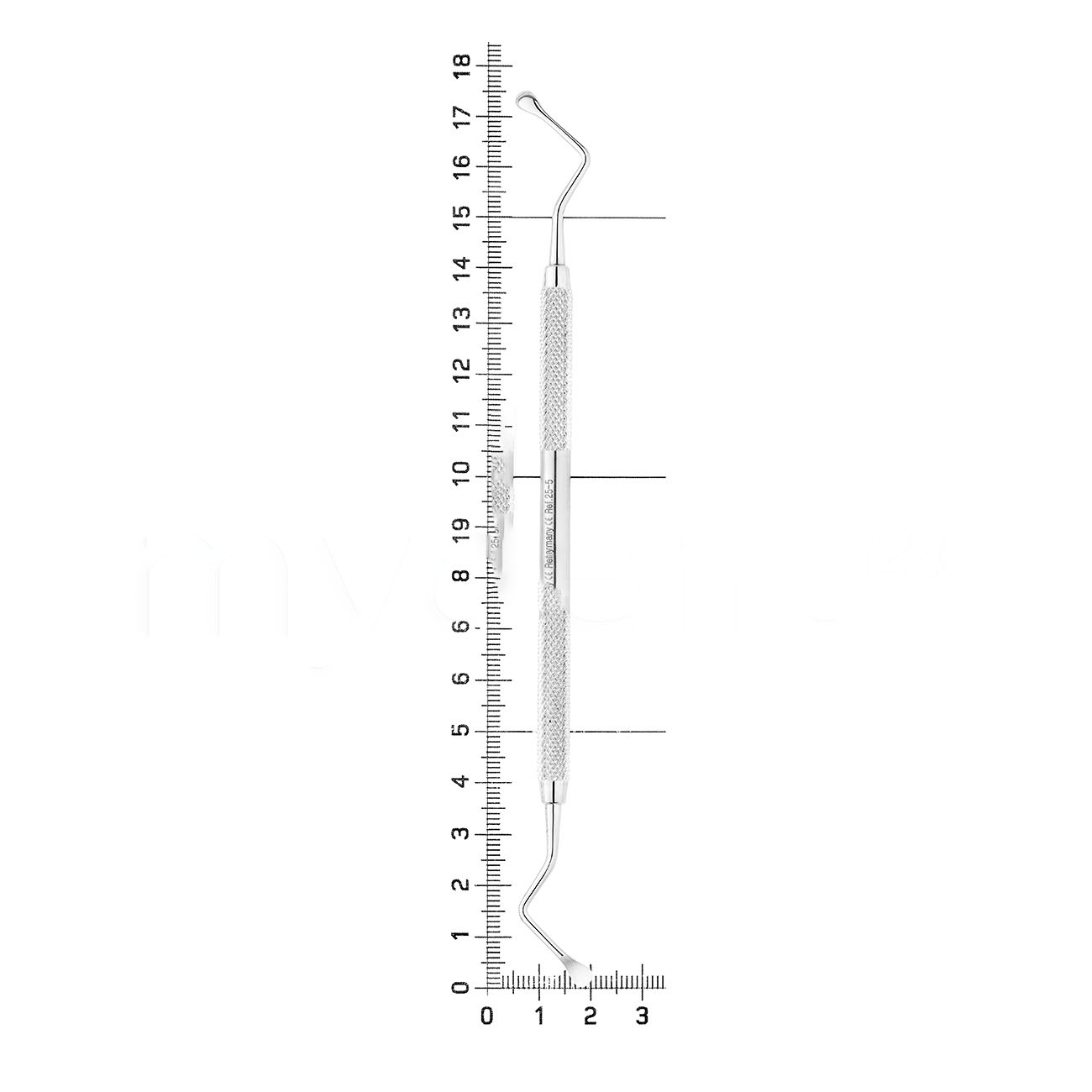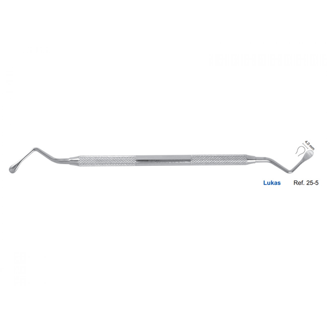 Двухсторонняя изогнутая кюретажная ложка Lukas с диаметром рабочих частей 4 мм применяется в стоматологической практике для выскабливания остаточных фрагментов кости, кист и грануляционных тканей после удаления моляров и премоляров. Удобная небликующая рукоять с матовой насечкой хорошо передает нажим на рабочую часть инструмента, что позволит лучше очистить зубную лунку.