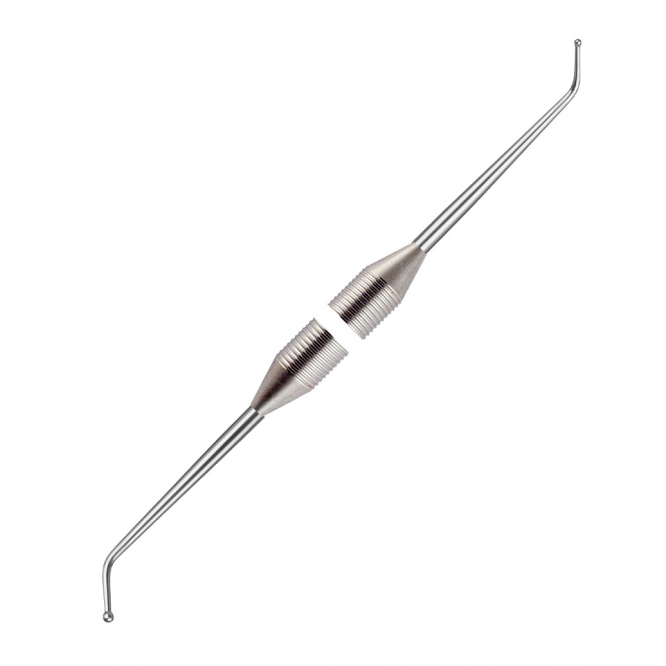 Малый шарообразный штопфер 02-15 - двухсторонний стоматологический инструмент для утрамбовки пломбировочного материала с целью удаления пузырьков воздуха и прочих дефектов из пломбы. Штопфер в виде шарика - оптимальный инструмент для паковки современных стоматологических композитов. Прямой хвостовик рабочей части обеспечивает удобство при работе с зубами фронтальной группы.