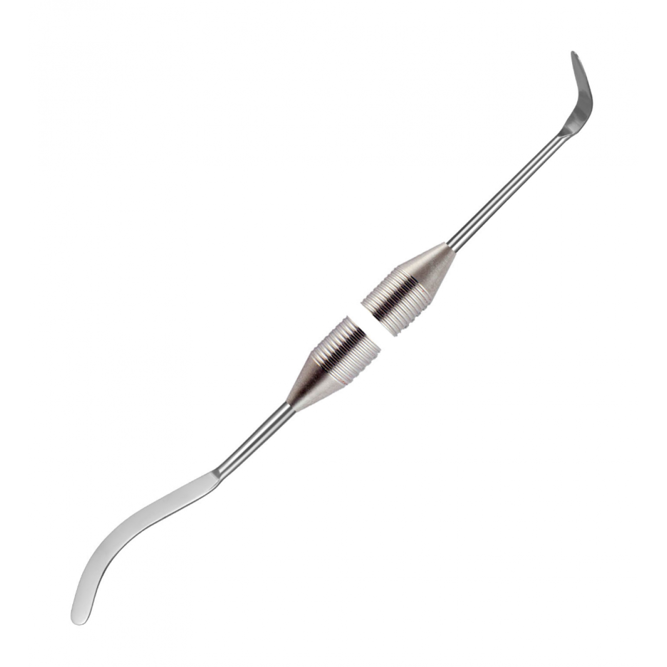 Большая серповидная стоматологическая гладилка 03-03 с рабочей частью вида «пятка» - двухсторонний инструмент для внесения, формирования и выравнивания поверхности временных пластиковых и крупных композитных реставраций. Прямой хвостовик инструмента лучше всего подходит для работы с зубами фронтальной группы.
