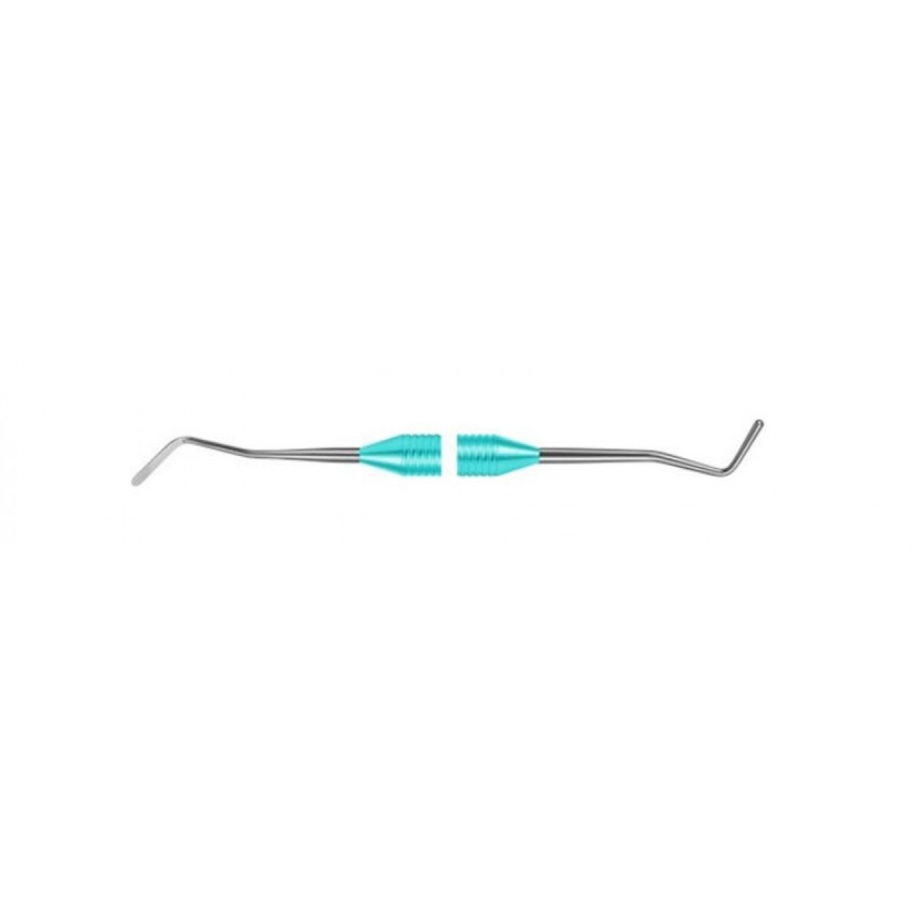 Средний обратноконусный штопфер-гладилка 04-02 - комбинированный двусторонний стоматологический инструмент для внесения, моделирования и утрамбовки пломбировочного материала с целью удаления пузырьков воздуха и прочих дефектов из пломбы. Штопфер обратной конусности подходит для плотной паковки амальгамы, в то время как изогнутый хвостовик рабочей части позволяет работать с премолярами и молярами. Благодаря особой финишной обработке и рукоятке из легкого титанового сплава ярких цветов штопферы-гладилки Экрадент устойчивы к коррозии, легко очищаются от стоматологических материалов и выдерживают различные методы стерилизации.