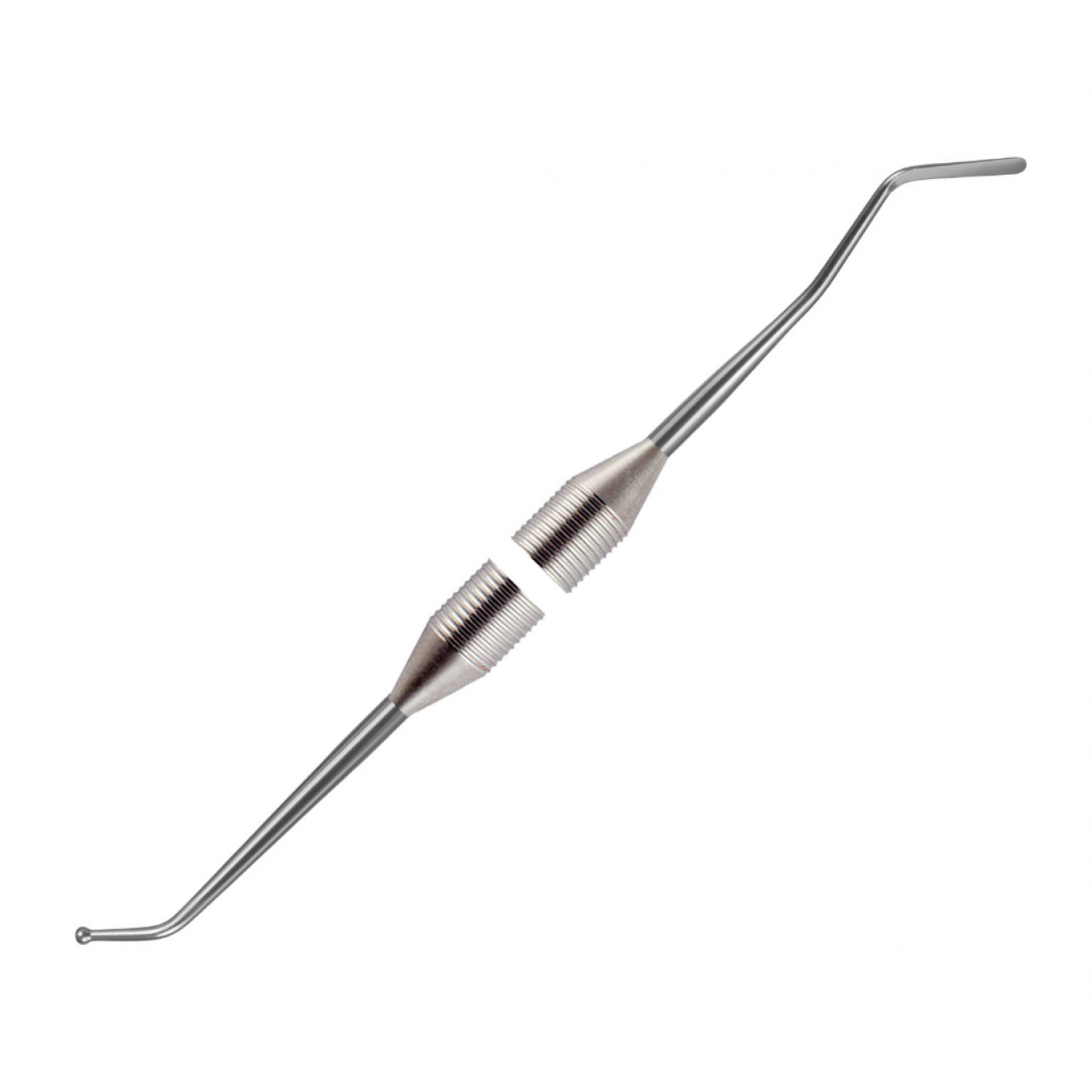 Малый прямой шарообразный штопфер-гладилка 04-08 - комбинированный двусторонний стоматологический инструмент для внесения, моделирования и утрамбовки пломбировочного материала с целью удаления пузырьков воздуха и прочих дефектов из пломбы. Штопфер в виде шарика - оптимальный инструмент для паковки современных стоматологических композитов. Прямой хвостовик рабочей части обеспечивает удобство при работе с зубами фронтальной группы.