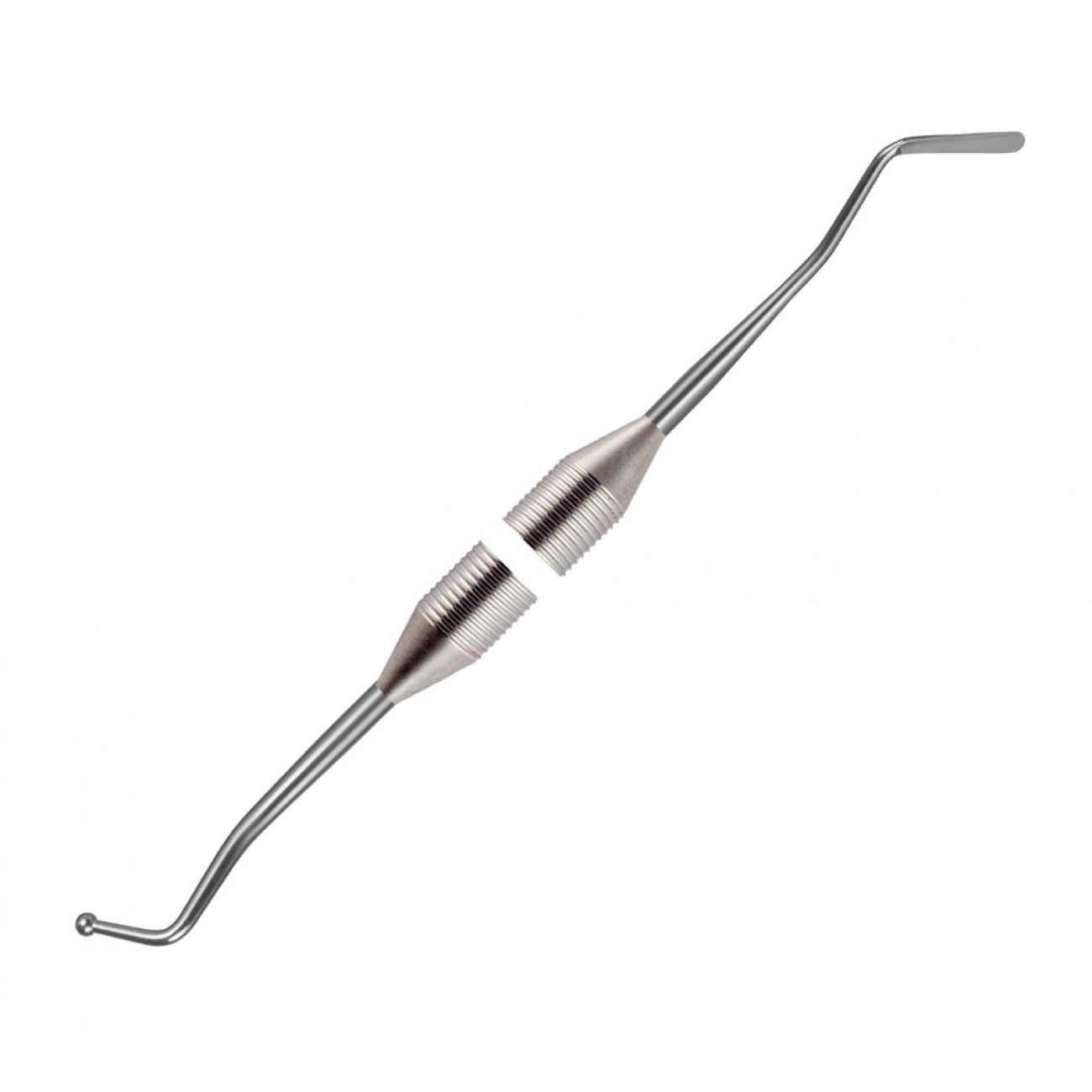Средний изогнутый шарообразный штопфер-гладилка 04-11 - комбинированный двусторонний стоматологический инструмент для внесения, моделирования и утрамбовки пломбировочного материала с целью удаления пузырьков воздуха и прочих дефектов из пломбы. Штопфер в виде шарика - оптимальный инструмент для паковки современных стоматологических композитов. Изогнутый хвостовик рабочей части позволяет работать с премолярами и молярами.