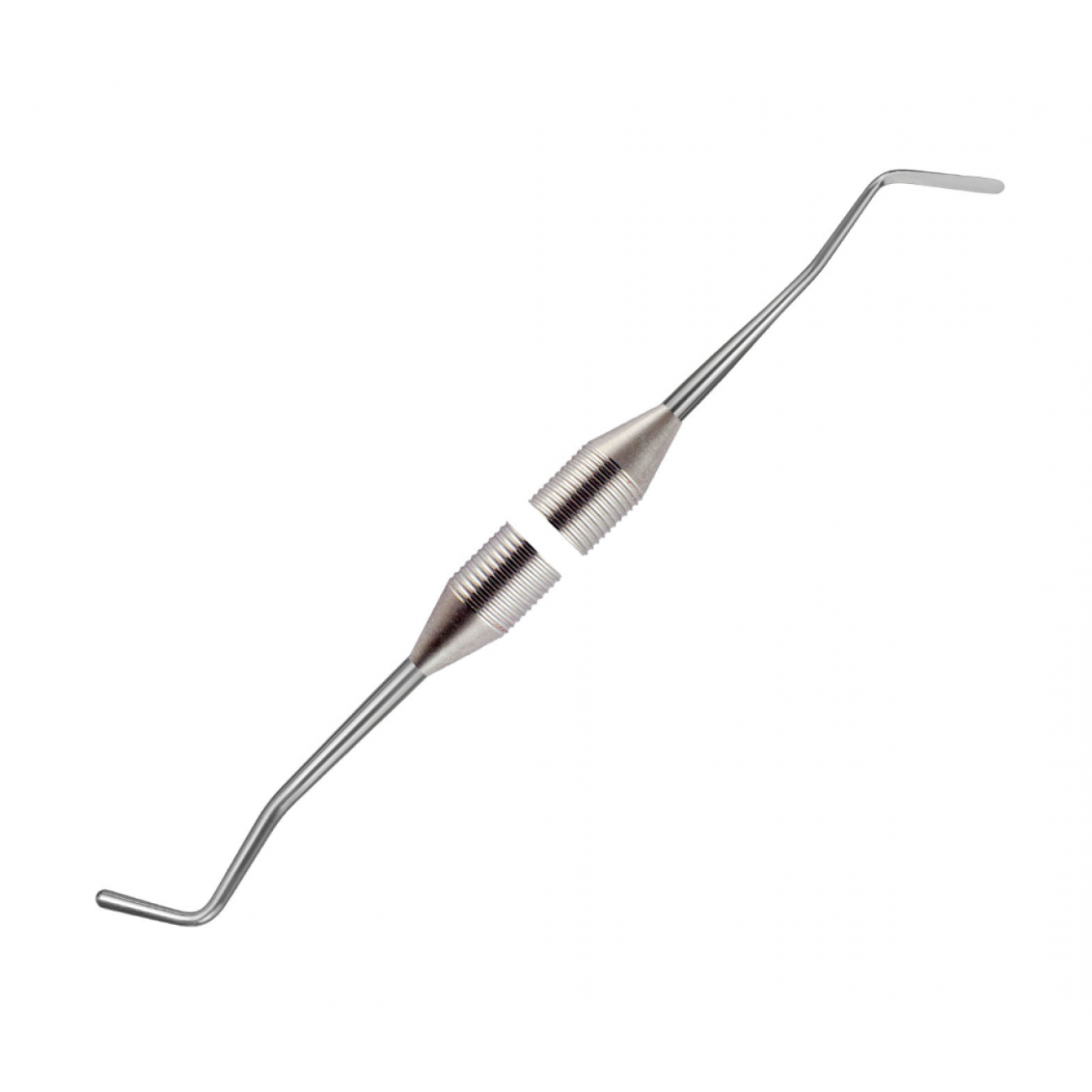 Средний обратноконусный штопфер-гладилка 04-15 - комбинированный двусторонний стоматологический инструмент для внесения, моделирования и утрамбовки пломбировочного материала с целью удаления пузырьков воздуха и прочих дефектов из пломбы. Штопфер обратной конусности подходит для плотной паковки амальгамы, в то время как изогнутый хвостовик рабочей части позволяет работать с премолярами и молярами.