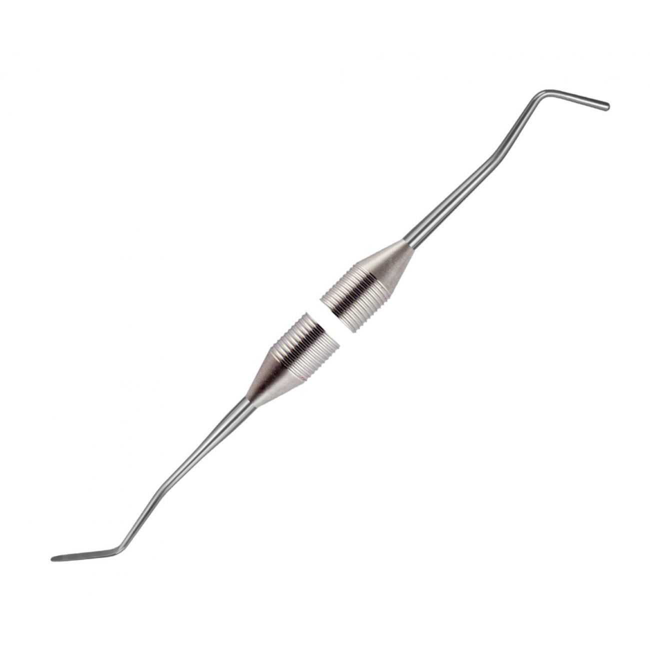 Обратноконусный штопфер - малая гладилка №1 04-19 - комбинированный двусторонний стоматологический инструмент для внесения, моделирования и утрамбовки пломбировочного материала с целью удаления пузырьков воздуха и прочих дефектов из пломбы. Штопфер обратной конусности подходит для плотной паковки амальгамы, в то время как изогнутый хвостовик рабочей части позволяет работать с премолярами и молярами.