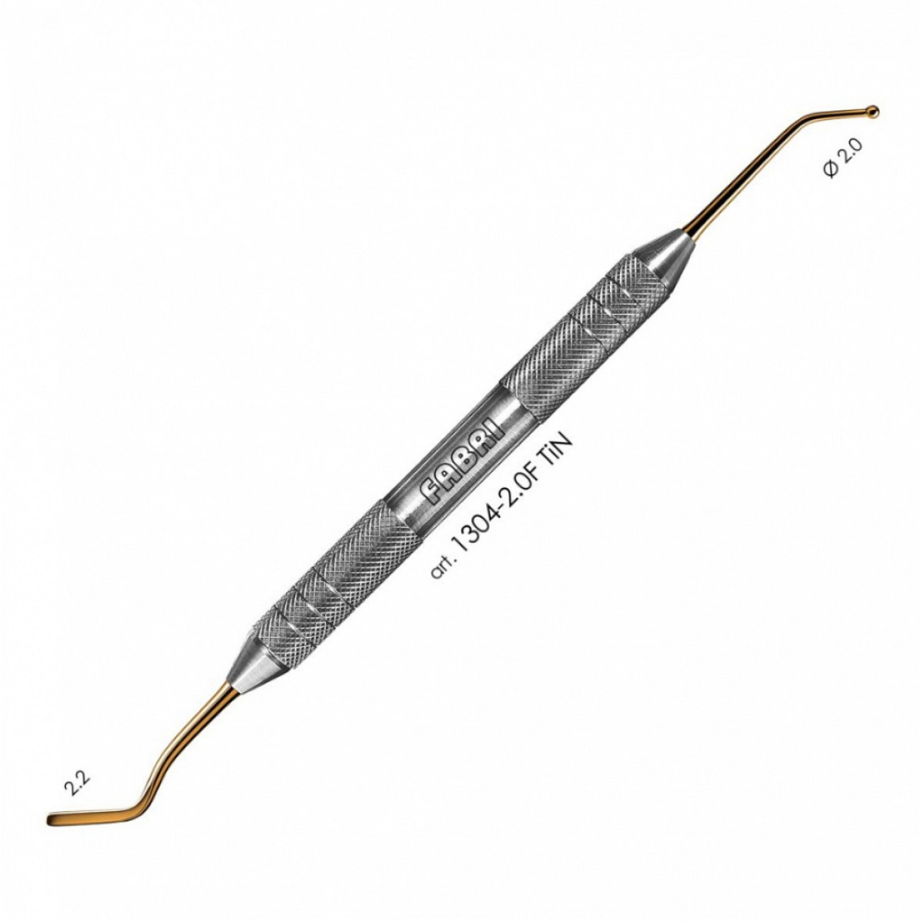 1304-2,0F TiN-Удлиненная средняя гладилка с штопфером-шариком Ø 2.0mm. Эргономичная ручка Ø 10mm. Покрытие Gold