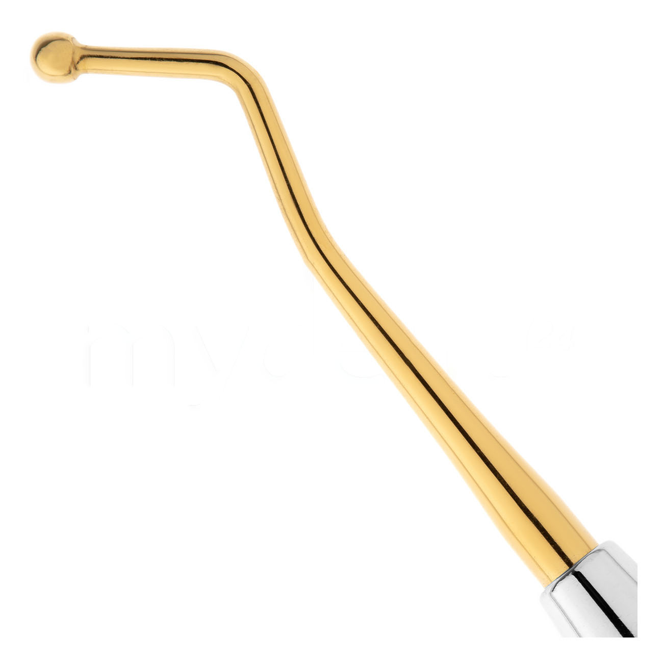 "24-6 Штопфер двусторонний, шарик-шарик, 2,4-1,8 мм, нитрид-титановое покрытие" — это незаменимый инструмент в арсенале стоматолога, который предназначен для моделирования и уплотнения пломбировочного материала при реставрации зубов.