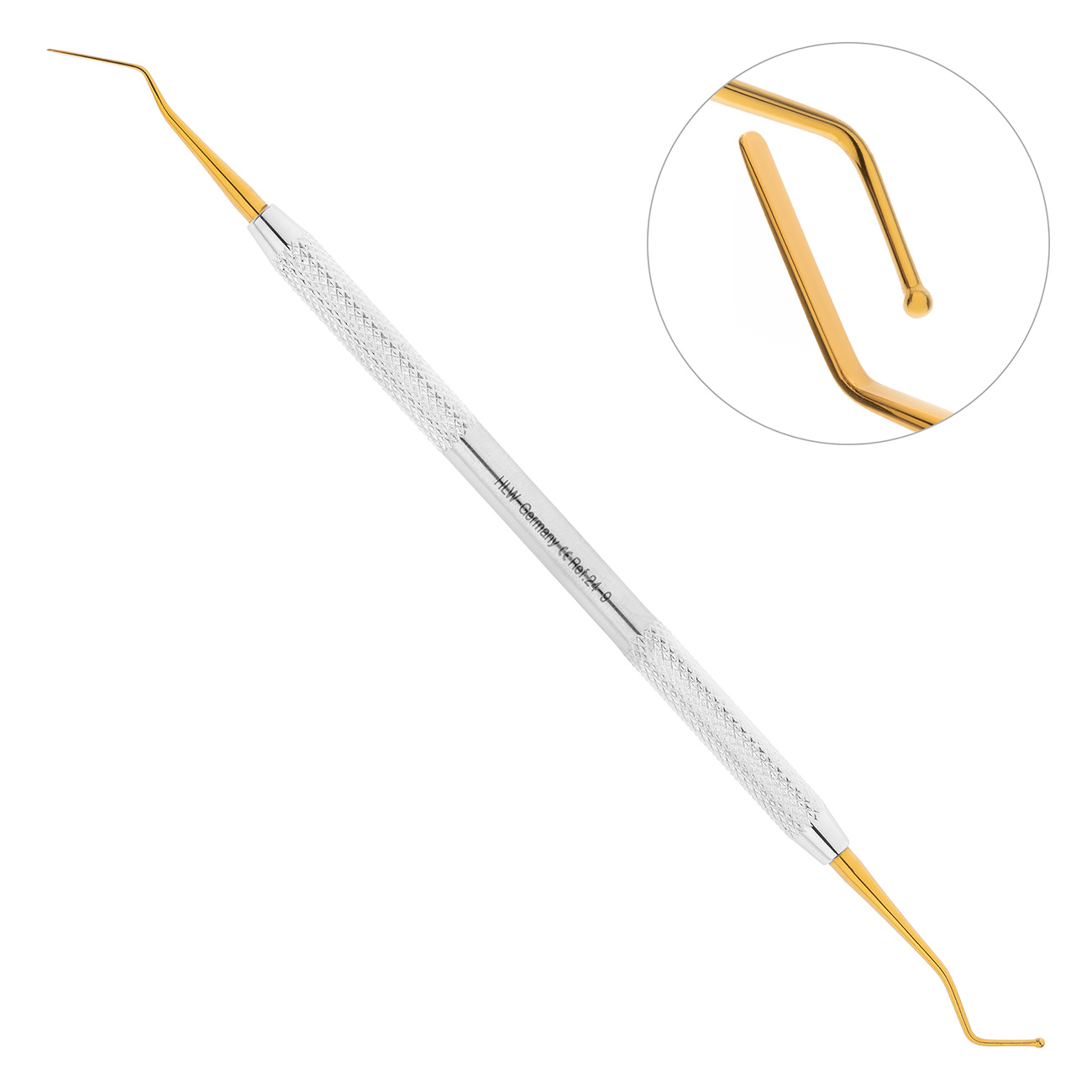 "Гладилка-штопфер 24-9: двусторонний, прямой-шарик, 1,5-1,3 мм, нитрид-титановое покрытие"