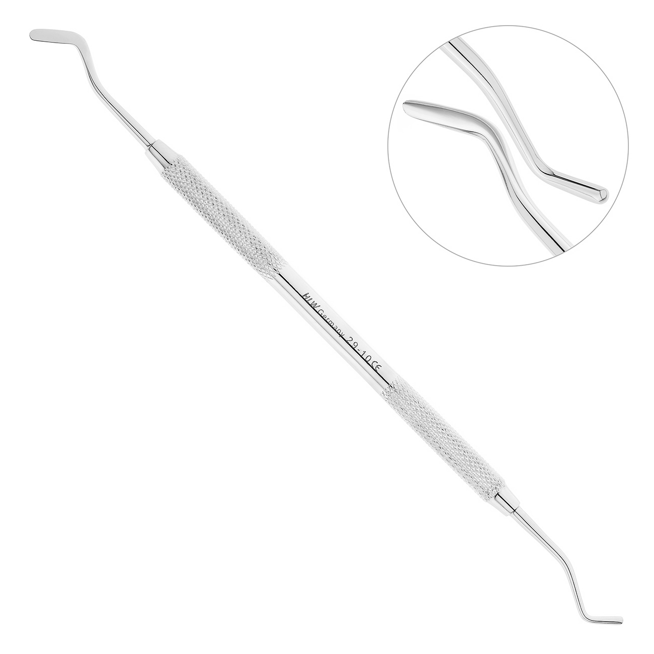 "Гладилка-штопфер 29-10" — это жёсткий моделировочный инструмент, предназначенный для работы с материалами средней и высокой вязкости, такими как амальгама, паста, пластмасса и другие.
