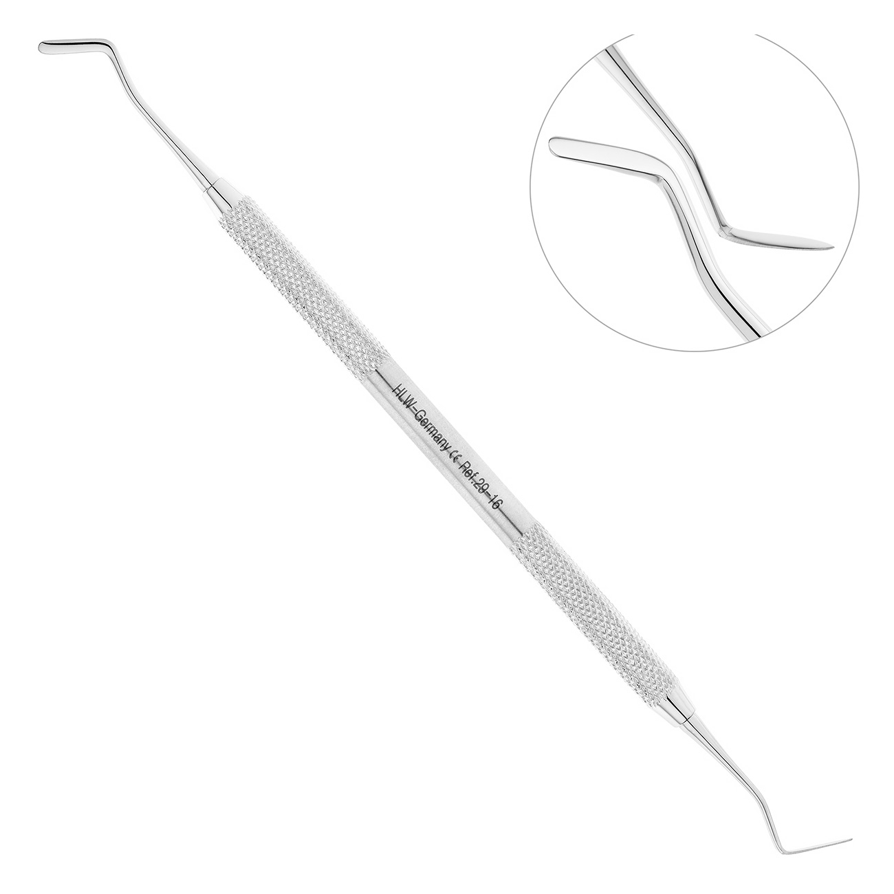 Жёсткая структура гладилки позволяет эффективно формировать зубные ткани, а острый край обеспечивает точность и аккуратность работы.