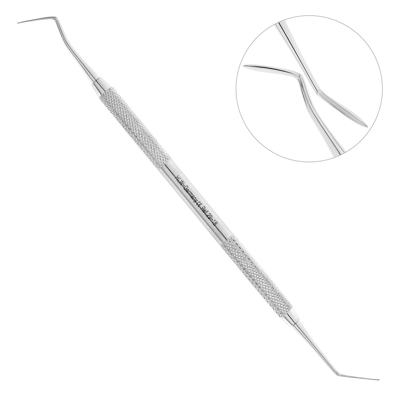 Назначение: двусторонняя гладилка используется для моделирования и формирования зубных тканей, а также для создания ретенционных пунктов при работе с ретр нитью. Она позволяет точно и аккуратно выполнять все необходимые манипуляции.