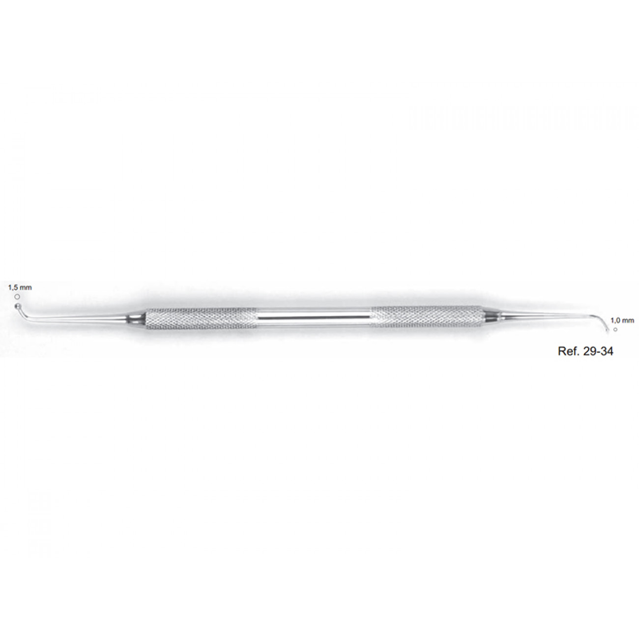 Представляем вашему вниманию двусторонний моделировочный инструмент 29-34 — незаменимый помощник в работе стоматолога. Этот инструмент сочетает в себе шарик диаметром 1,5 мм на одном конце и шарик диаметром 1,0 мм на другом, что позволяет выполнять разнообразные задачи в полости рта пациента.