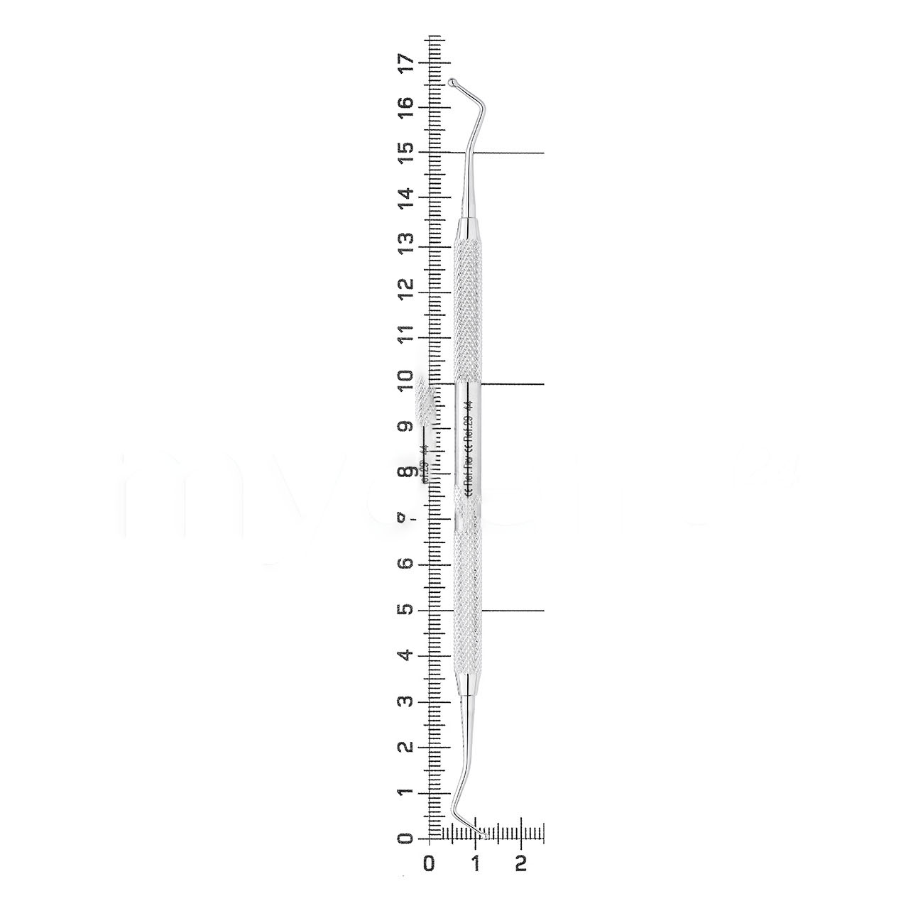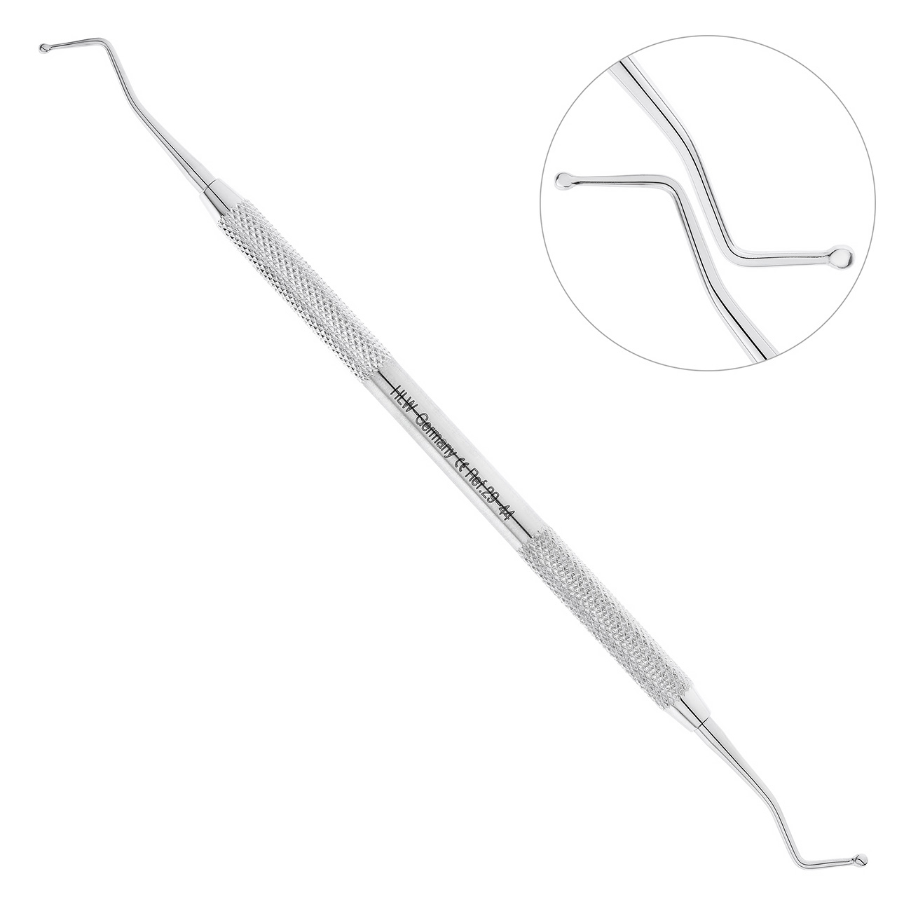 Инструмент имеет форму шарика на обоих концах, что обеспечивает удобство и точность работы. Размеры инструмента составляют 1.0–1.5 мм, что позволяет использовать его для различных задач в стоматологии.