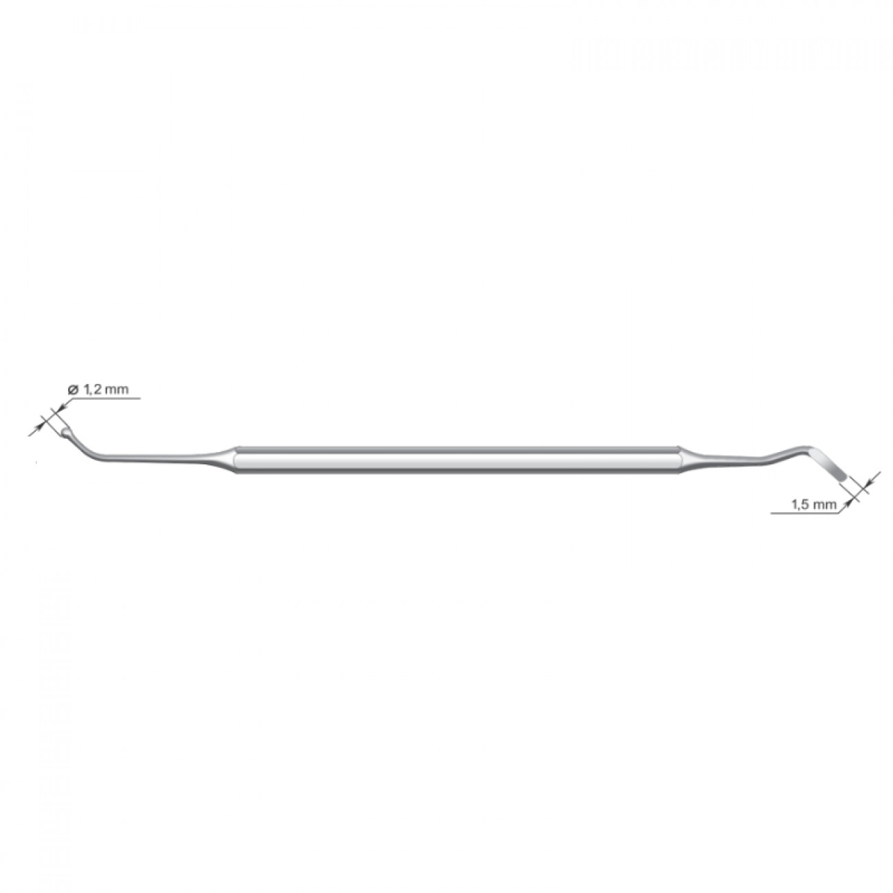 Первая рабочая часть имеет грушевидное окончание, расположенное относительно ручки под углом 40°. Диаметр грушевидной рабочей части — 1.2 мм.