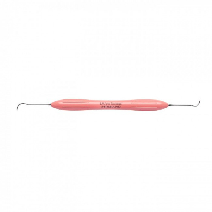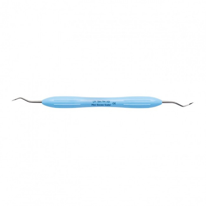 Угол рабочих частей позволяет работать в пришеечной зоне фронтальных зубов, а также удалять излишки из интерпроксимальных промежутков между молярами.