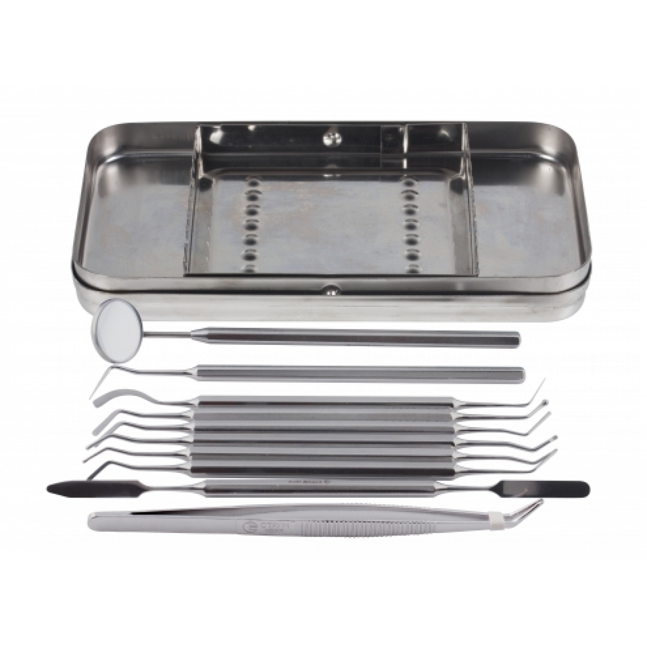 Комплект из 10 стоматологических инструментов. Производитель: Струм, Республика Беларусь. Показания: Предназначено для осмотра и проведения стоматологических процедур. Характеристики: • Инструменты изготовлены из высококачественной нержавеющей стали. Высокую прочность изделий обеспечивают лазерные технологии производства. • Усиление рабочих кромок и коррозионная стойкость продлевают срок эксплуатации. • Набор содержится в боксе среднем - 190x100x30 мм. • Эргономичная форма ручек инструментов снижает риск развития кистевого туннельного синдрома.