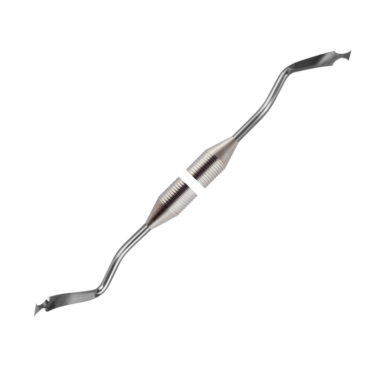 Изогнутое долото №2 09-03 - универсальный двусторонний стоматологический инструмент. Предназначен для обработки костной ткани и твердых зубных тканей, особенно в труднодоступных зонах. Эффективен для удаления зубного камня с межзубных поверхностей и корневой обработки.