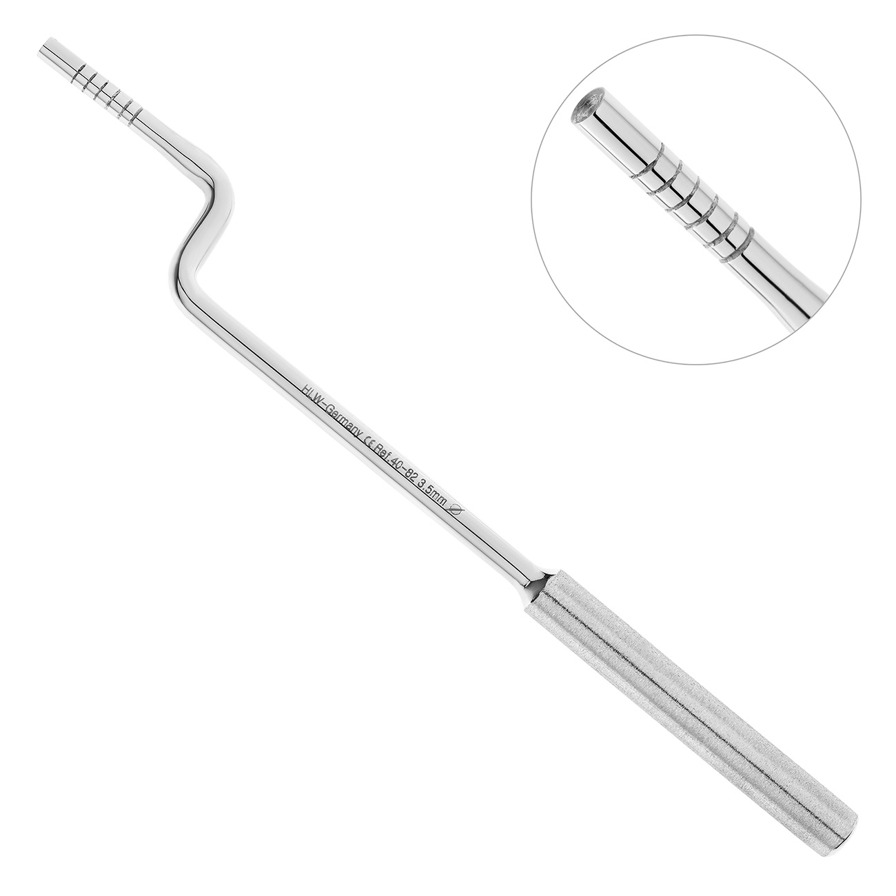 Представляем вашему вниманию остеотом изогнутый bajonett диаметром 3,5 мм с вогнутым кончиком. Этот инструмент относится к категории молотков, долот и остеотомов и предназначен для проведения остеотомии — операции по рассечению кости.