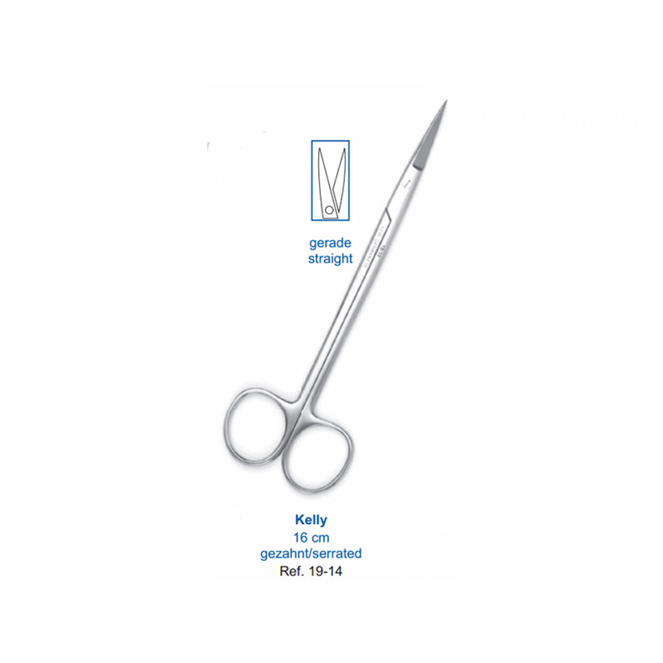 "Ножницы хирургические прямые Kelly, 160 мм, зубчатые (19-14)" — это высококачественный инструмент, предназначенный для использования в стоматологической практике.