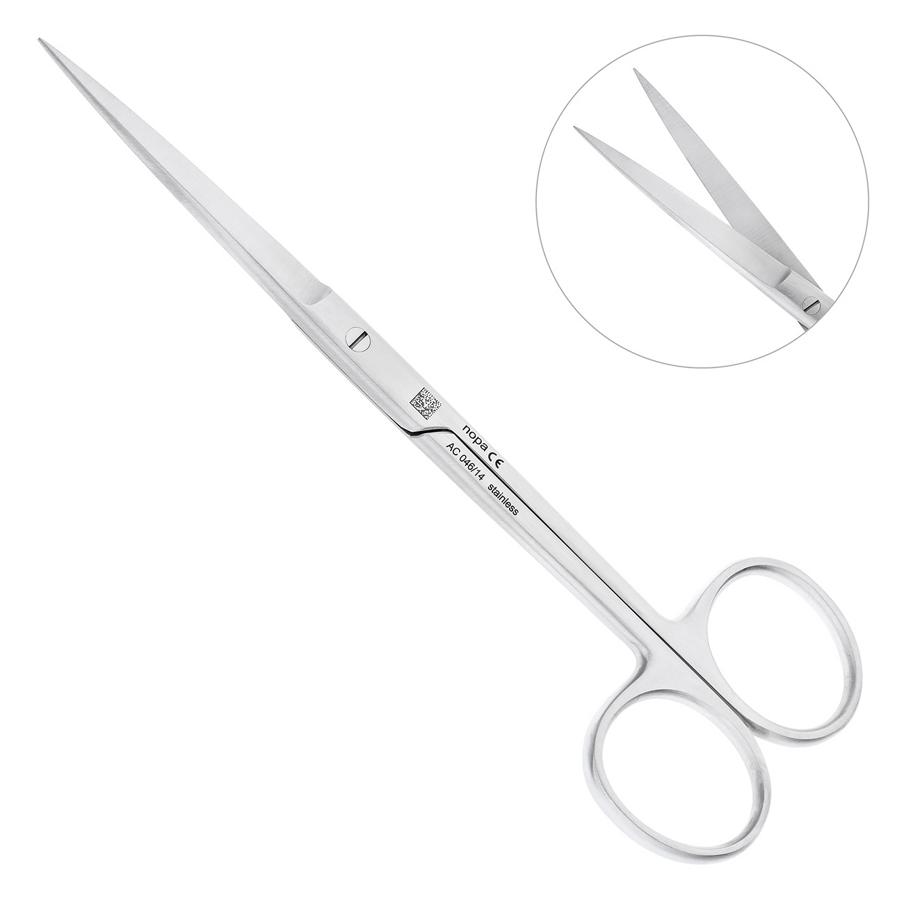 Лезвия ножниц находятся на продолжении длинной оси ручек. Такая конструкция инструмента очень удобна в использовании и способствует успешному проведению операции по разъединению мягких тканей.
