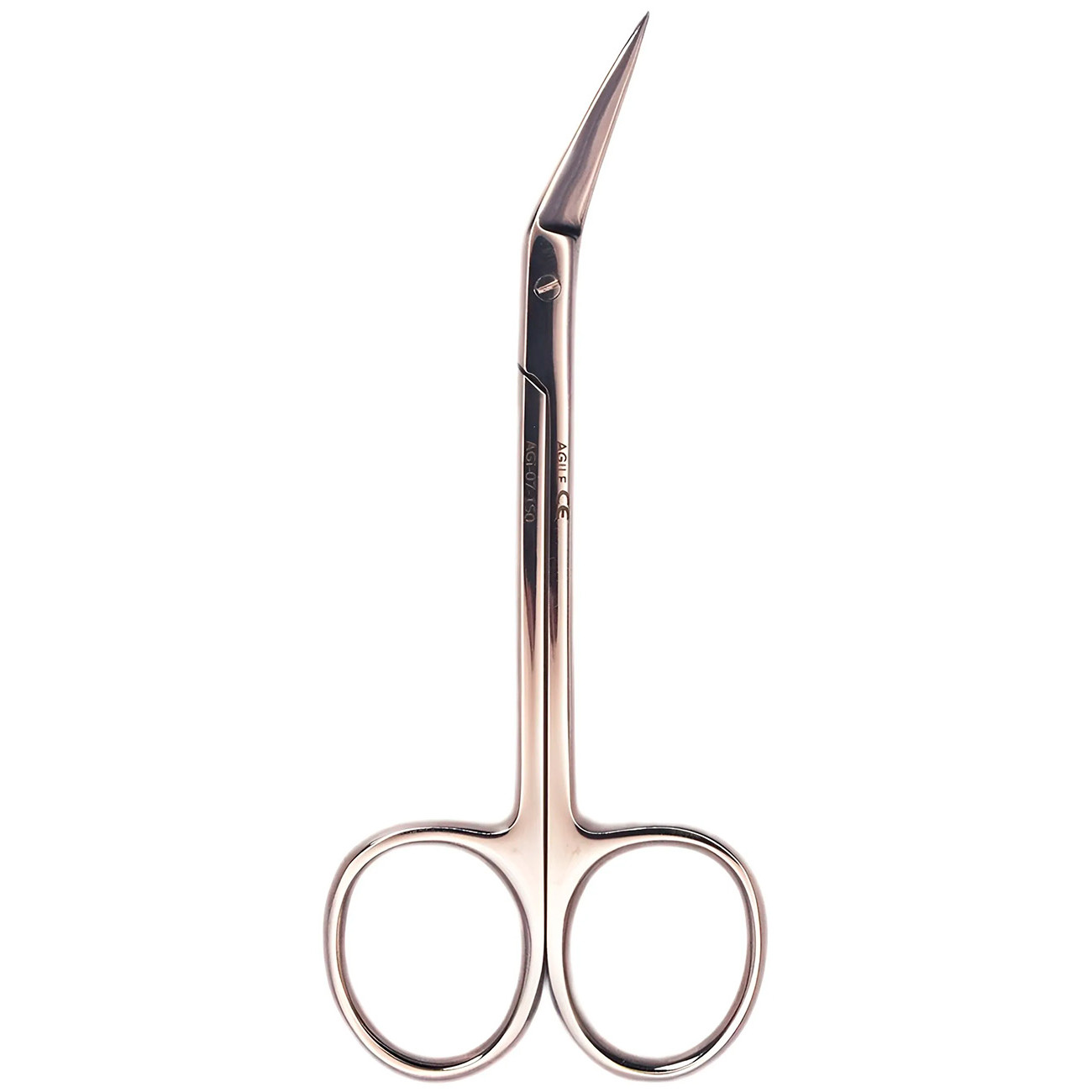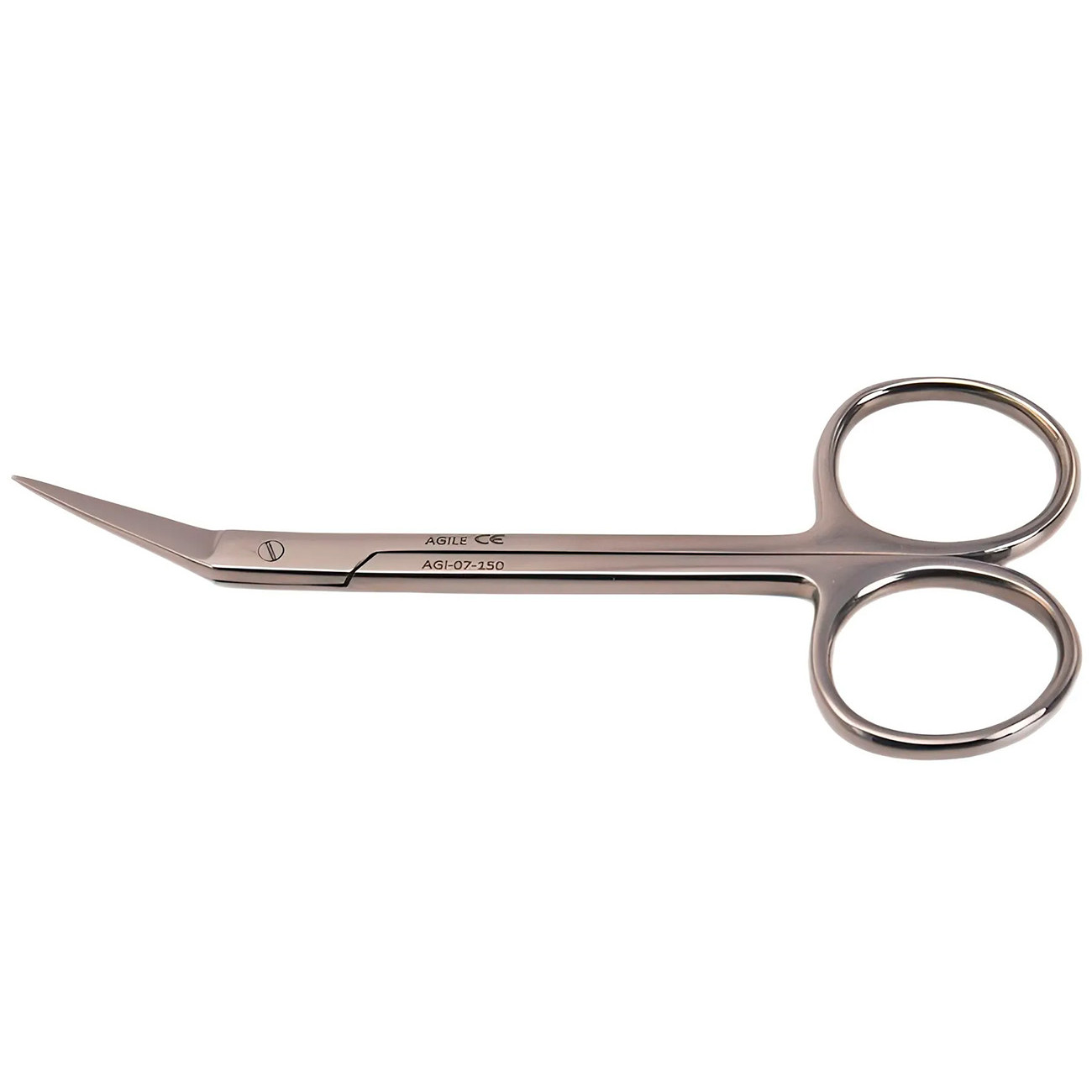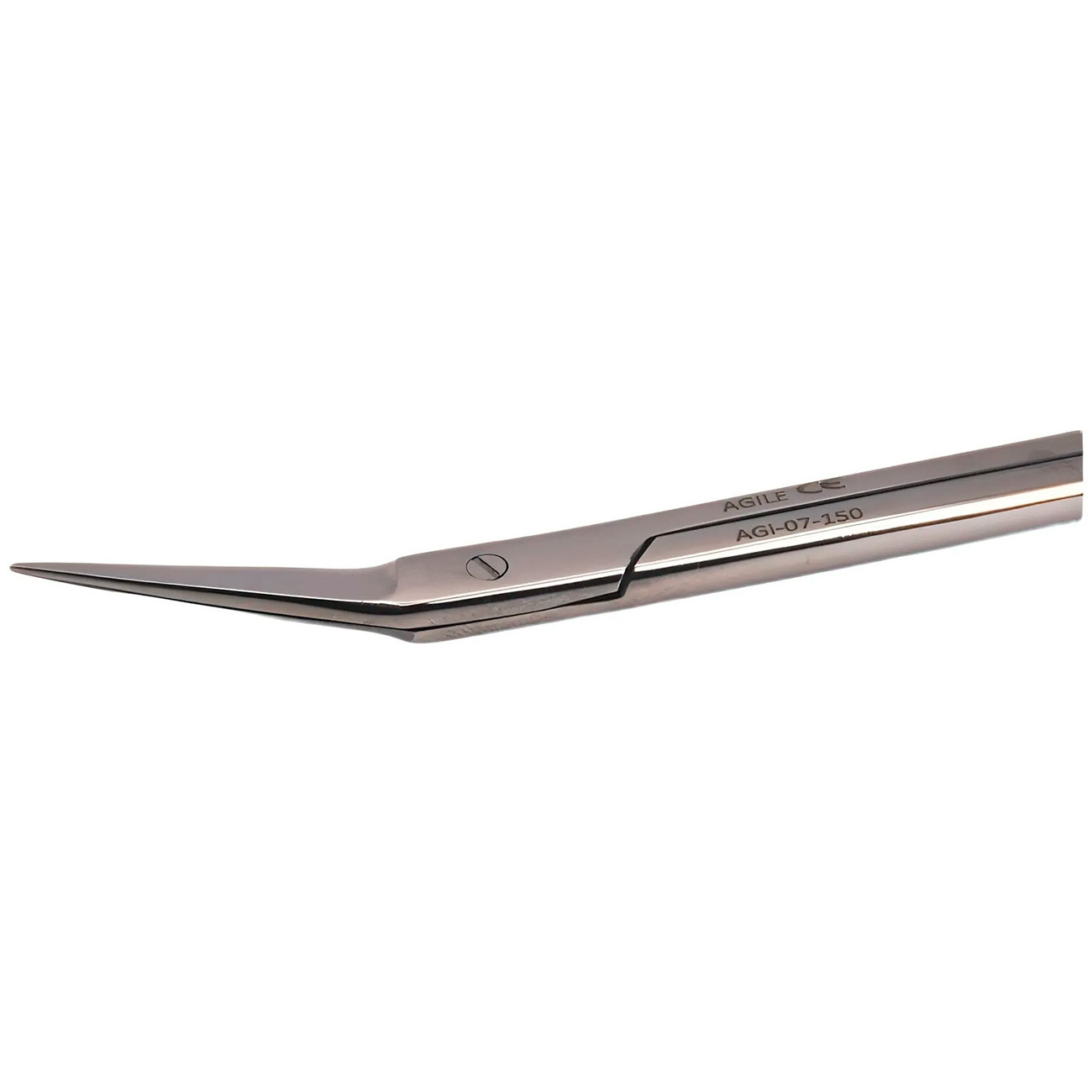 Угловые хирургические ножницы по Вагнеру AGILE Wagner 07-150 предназначены для глубокого препарирования мягких тканей ротовой полости, а также для разрезания нерассасывающихся шовных материалов после имплантации.