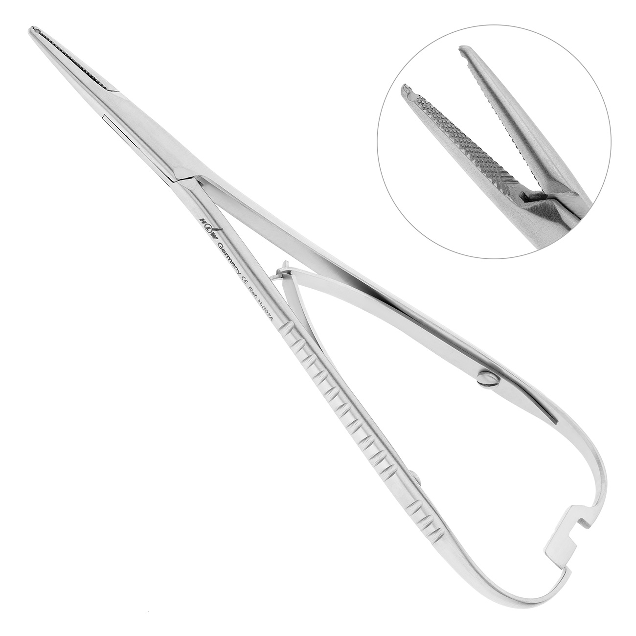 Материал, из которого изготовлен иглодержатель, обеспечивает прочность и долговечность инструмента. Он устойчив к коррозии и износу, что гарантирует его длительное использование без потери качества.