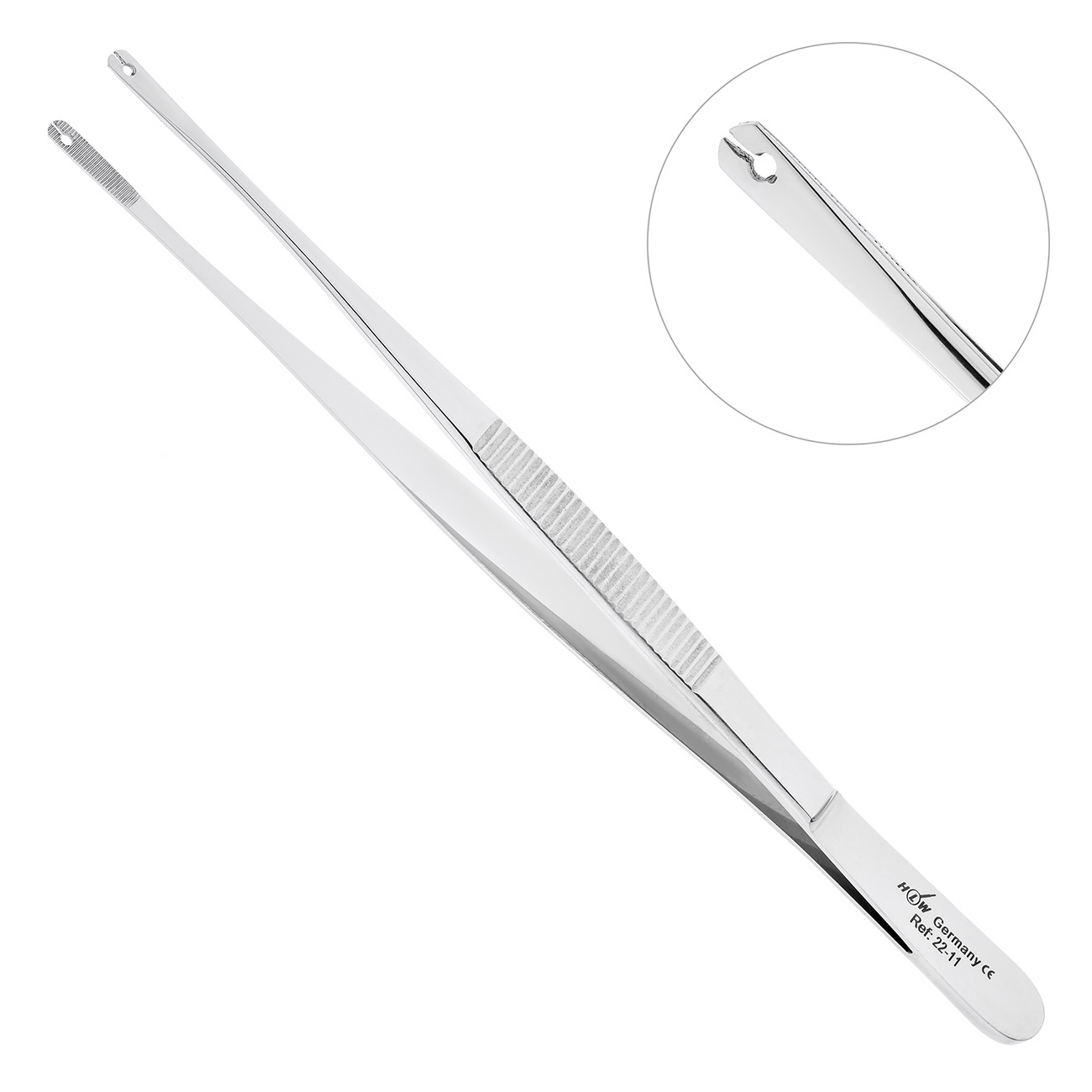 - прямой дизайн пинцета обеспечивает удобство при работе с различными видами шовного материала;